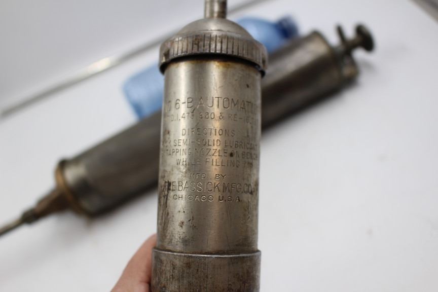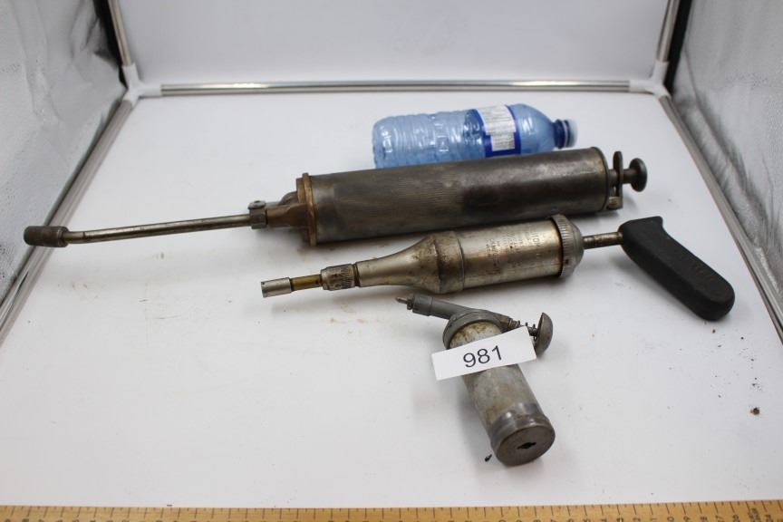1 Vintage Lincoln Lubrigun Mfg. By Lincoln Engineering and Co. U.S.A. 1 Grease Gun is Mfg, By Allemite Belleville, Canada 1 No. 6 Beautomatic Mfg. By The Bassick Mfg.and Co. U.S.A.