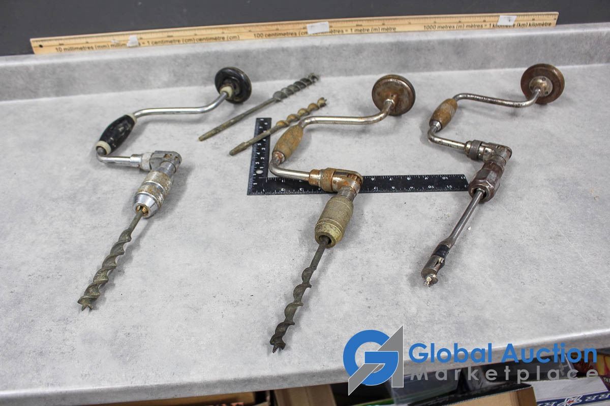 (3) Vintage Hand Drills w/(2) Extra Bits