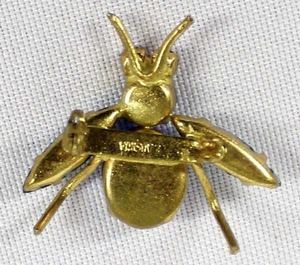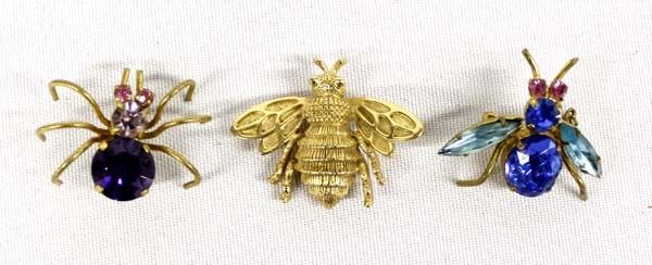 3 Vintage Insect Pins, the 2 with rhinestones are marked Made in Austria and the other is marked Avon, largest measures 1.5'' x 1''