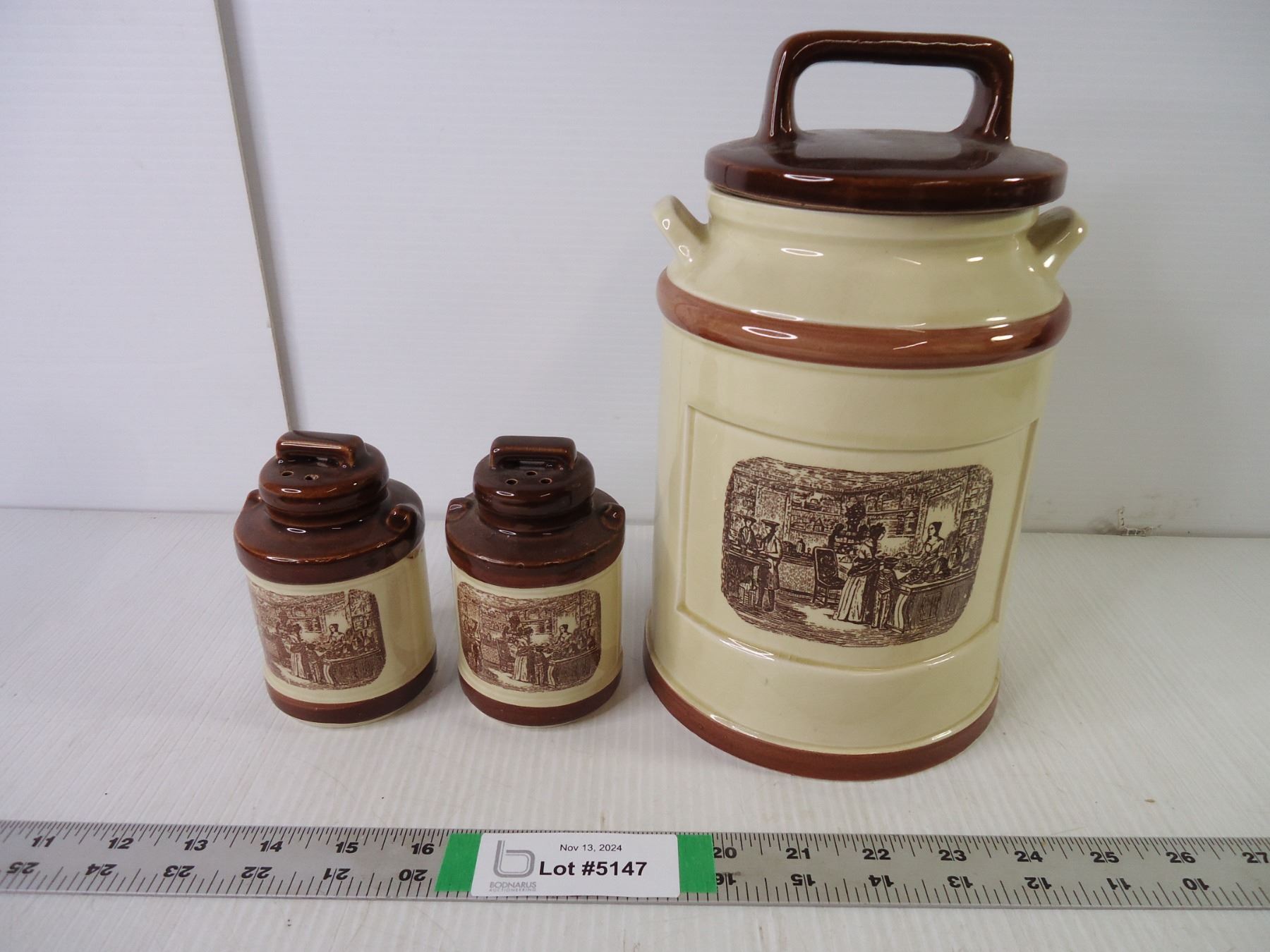 (3) Vintage Made in Japan Ceramic Storage Container and Salt/Pepper Set