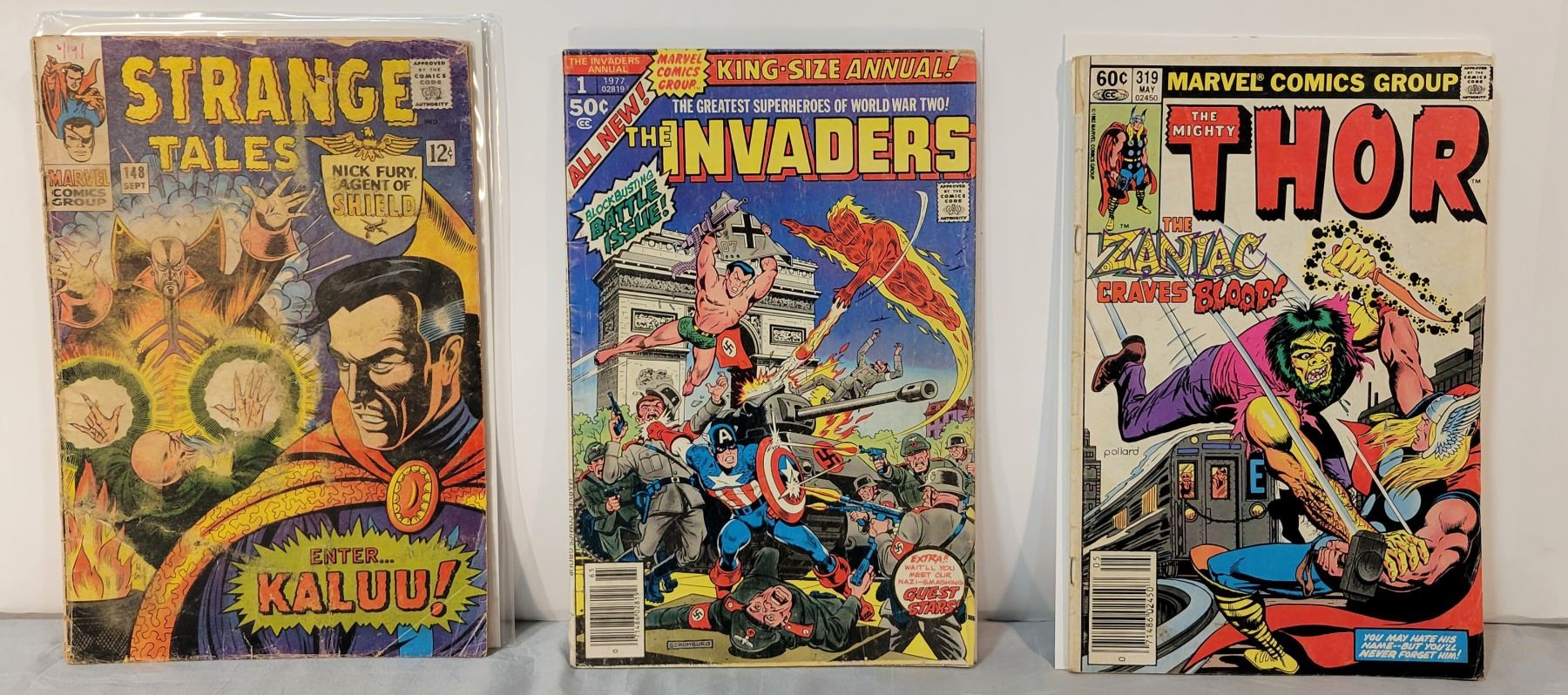 Strange Tales #148 1966 KEY: Origin Ancient One, Invaders Annual #1 1977, & Thor #319 1982 KEY: 1st Zaniac. Low