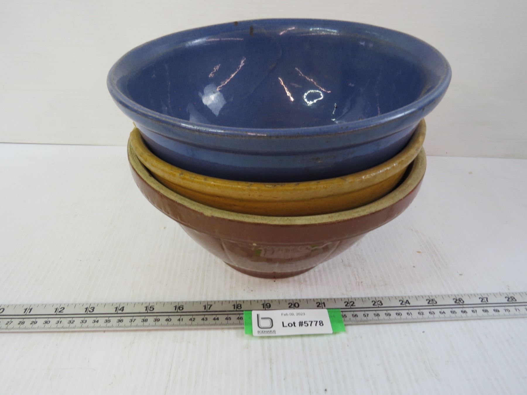 (3) Vintage Mixing Bowls - (One Blue Medalta #10) (one there has chip)