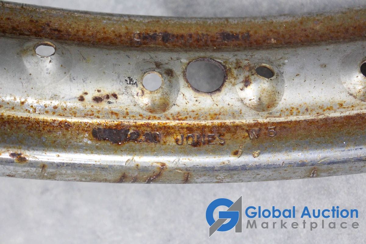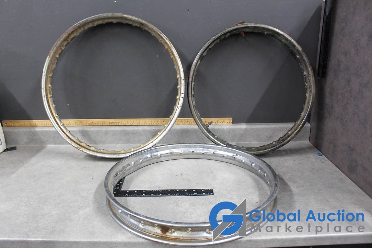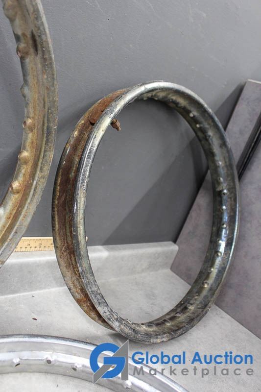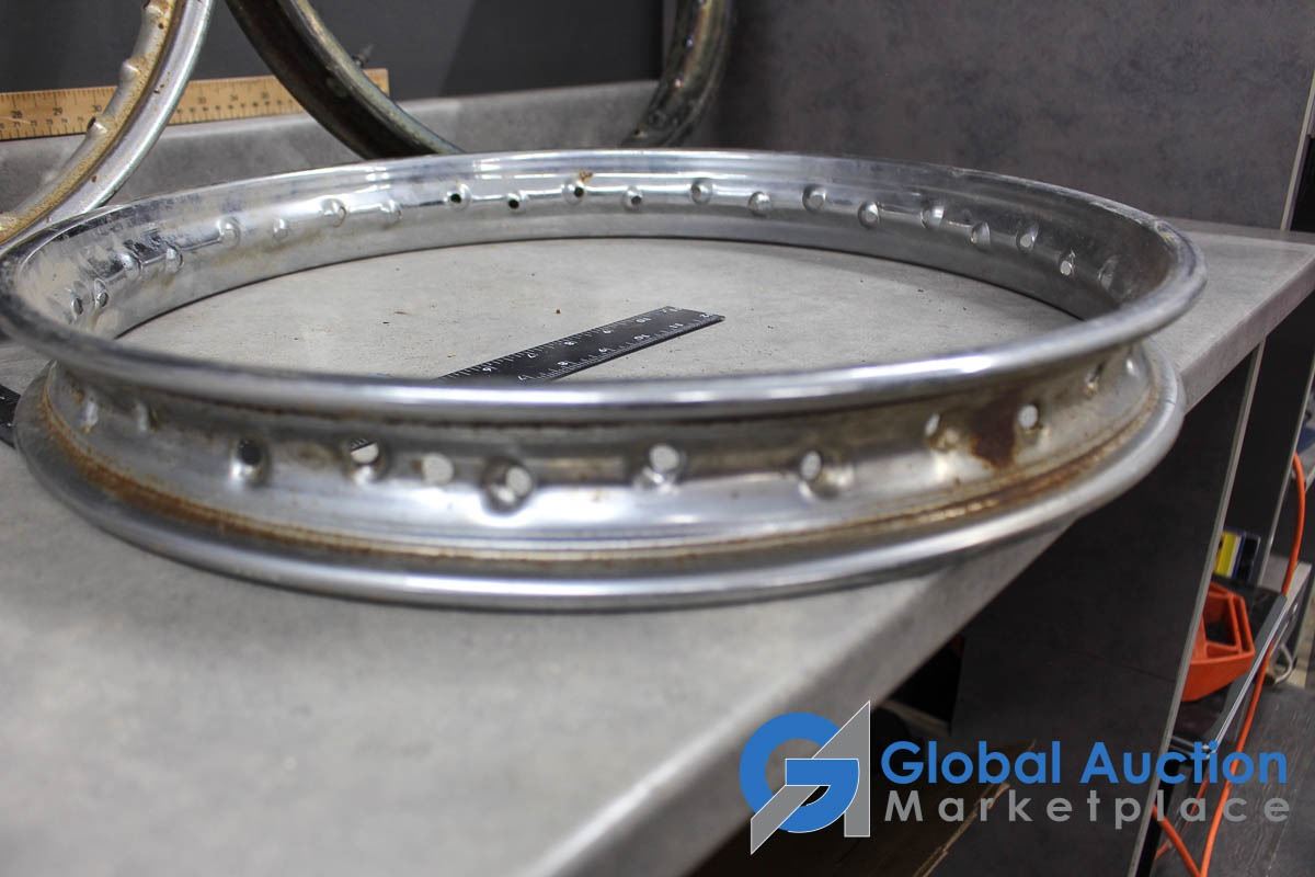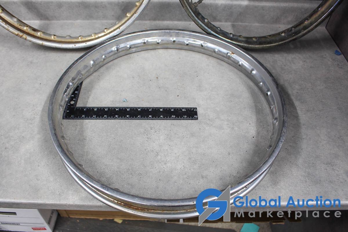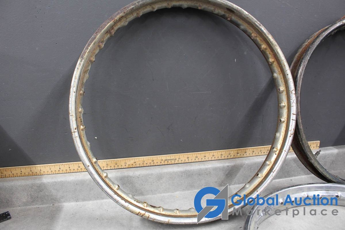 18", 20", & 21". One marked WM2.20 Jones, possibly for a Triumph, (2) Marked D.I.D, likely 80's Honda dirtbike rims.