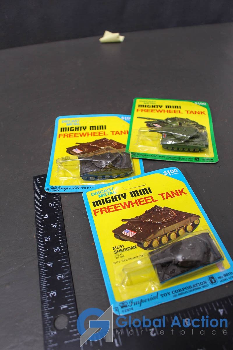 (3) Vintage NOS Mighty Mini Tanks in Packages (1974)