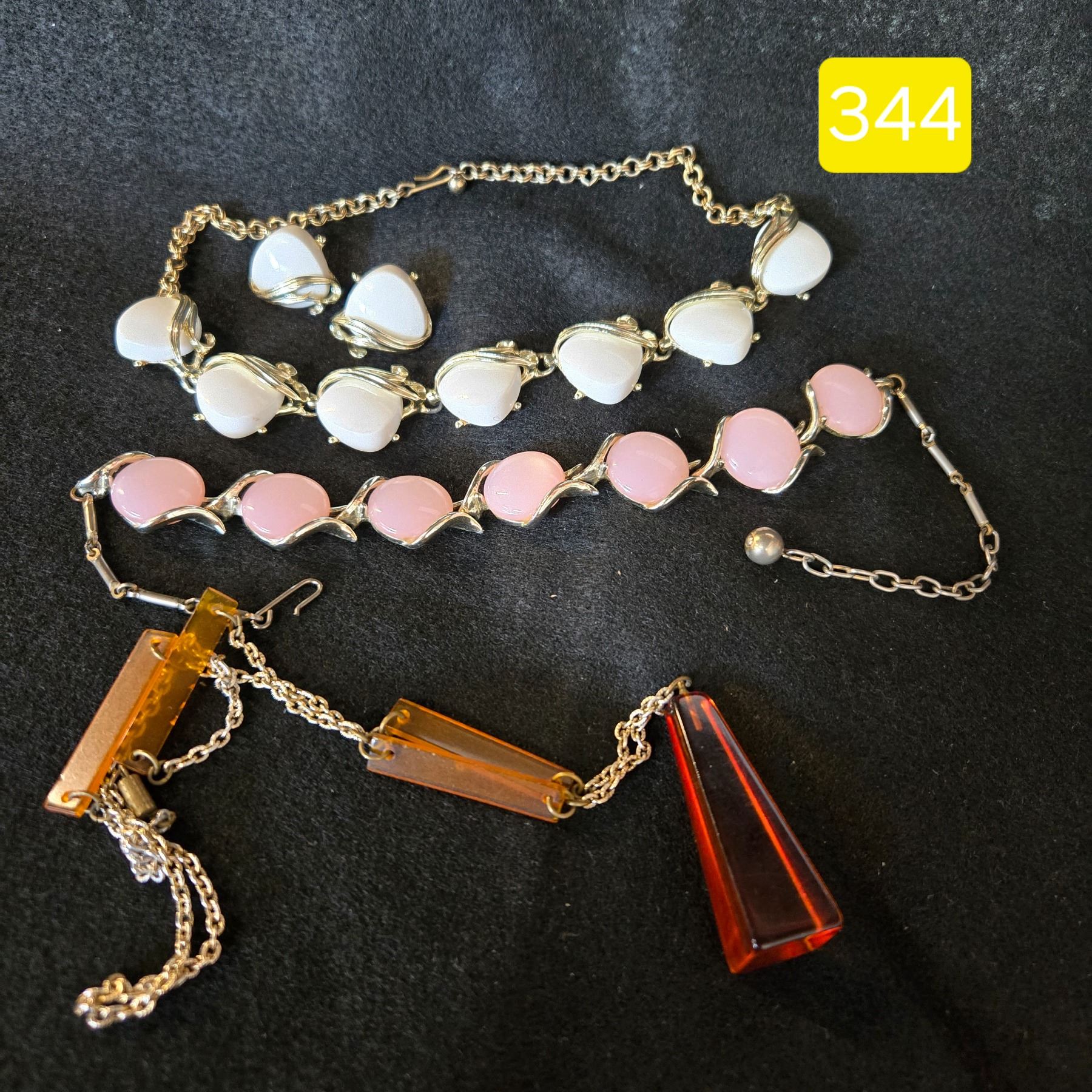 3 Vintage Necklaces, One With Clip On Earrings