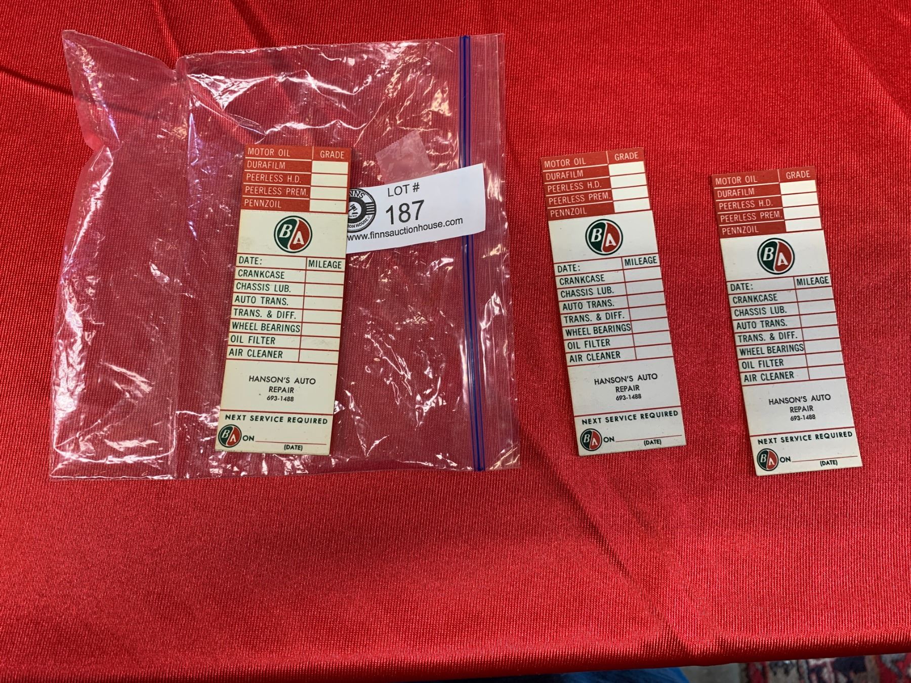 3 Vintage New Old Stock BA Oil Change Tags from the 1960's
