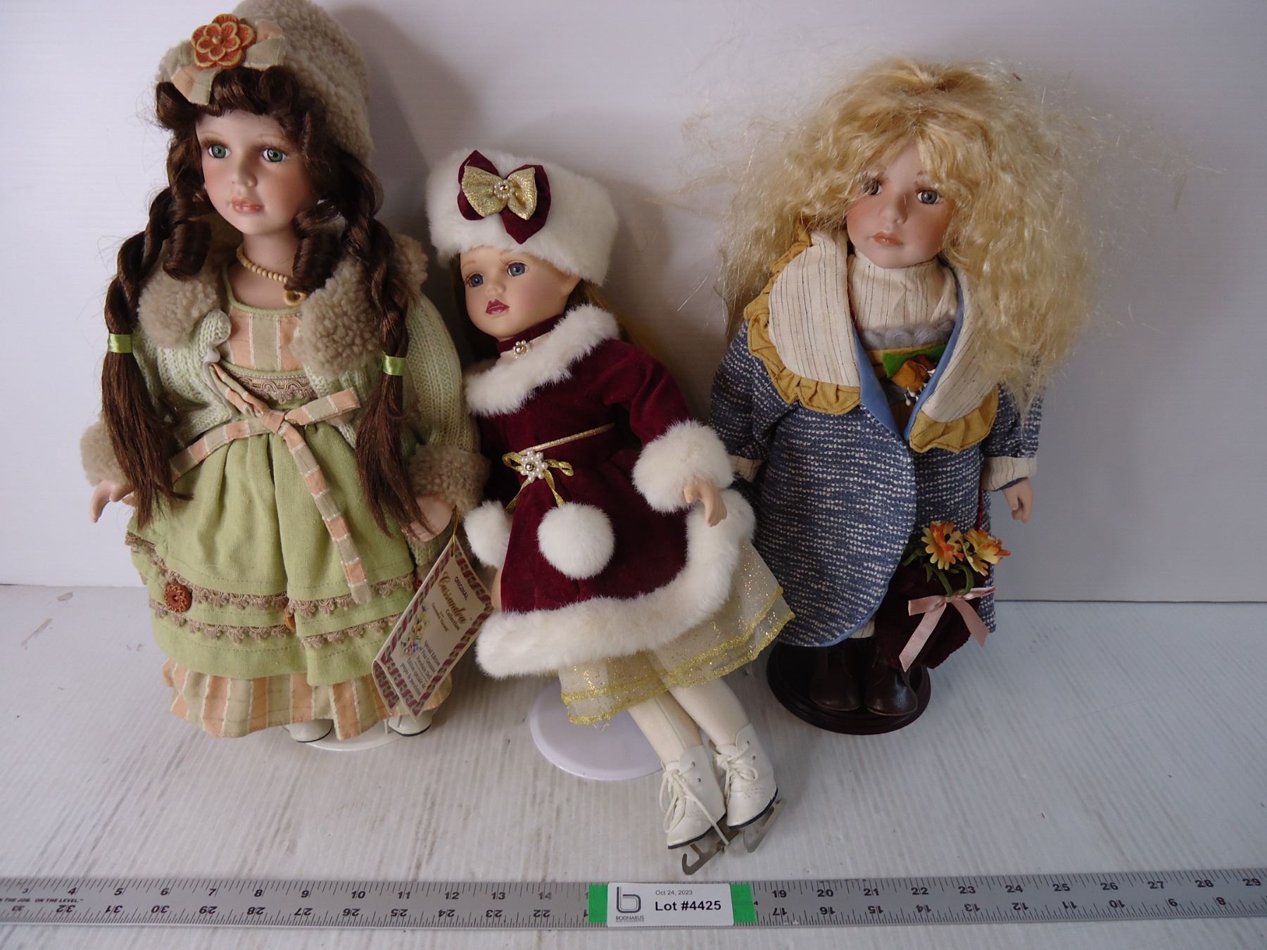 (3) Vintage Porcelain Dolls-approx. 18" Tall