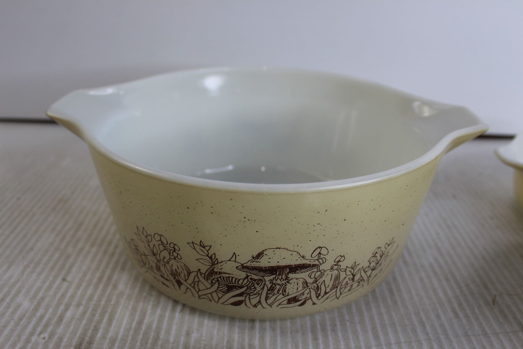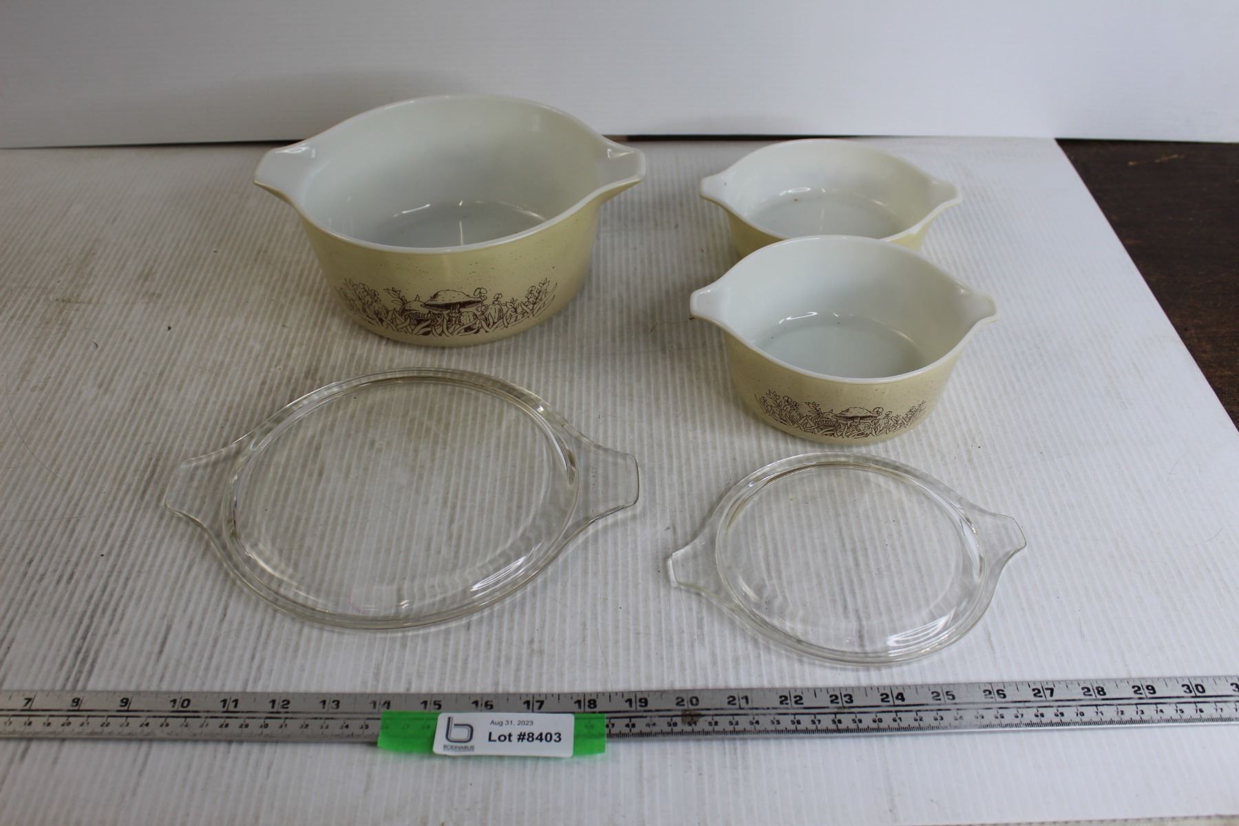 (3) Vintage Pyrex Casserole Dishes, (2) Lids