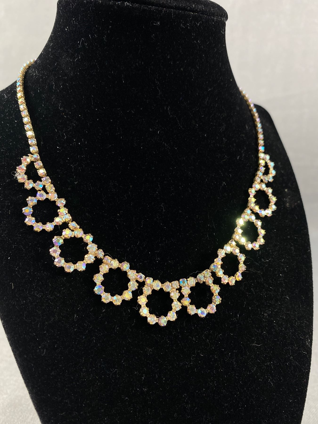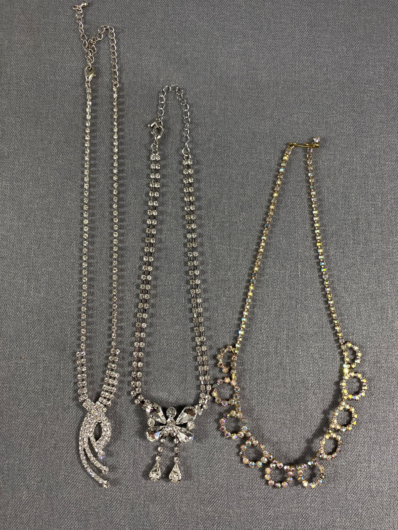 3 Vintage Rhinestone Choker Necklaces, One Borealis Colour