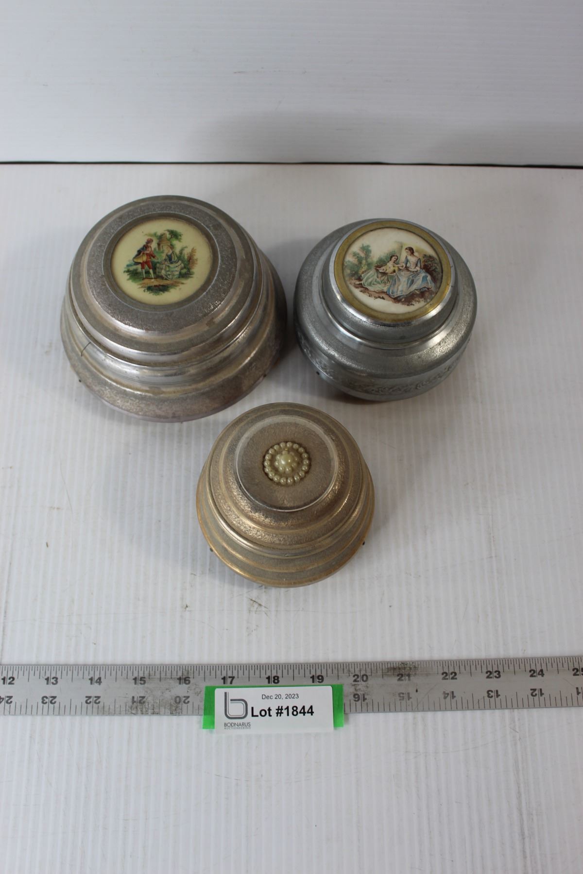 (3) Vintage Round Musical Jewellery Boxes - Working