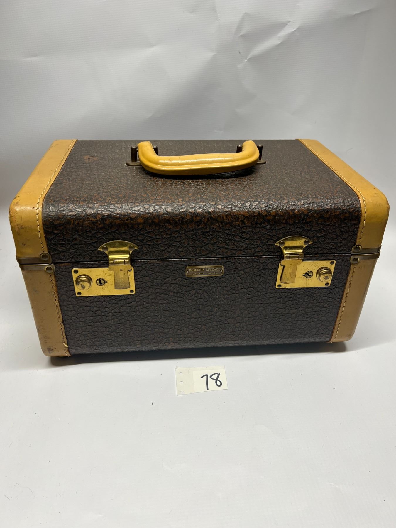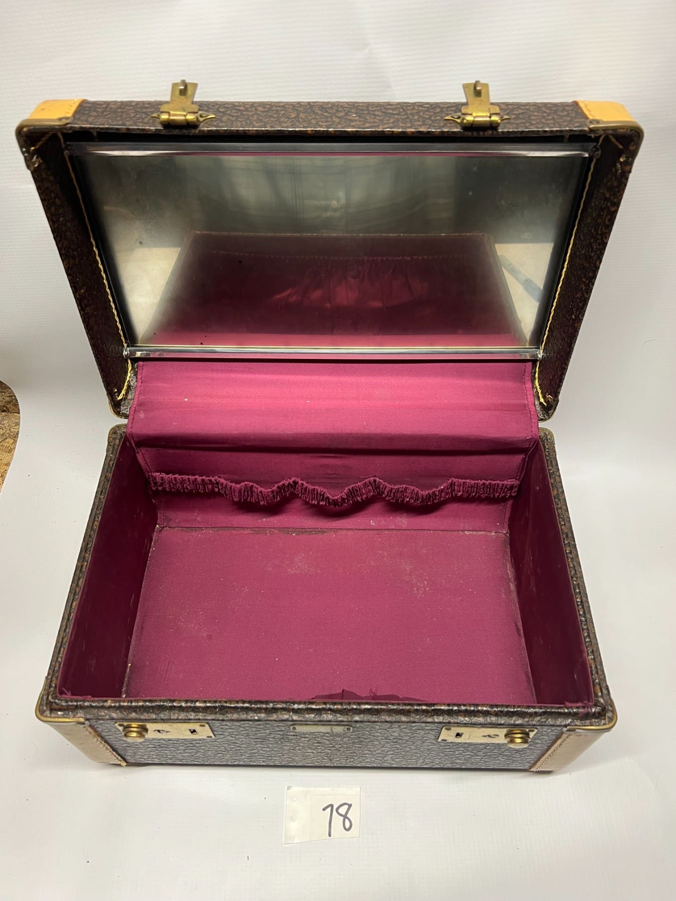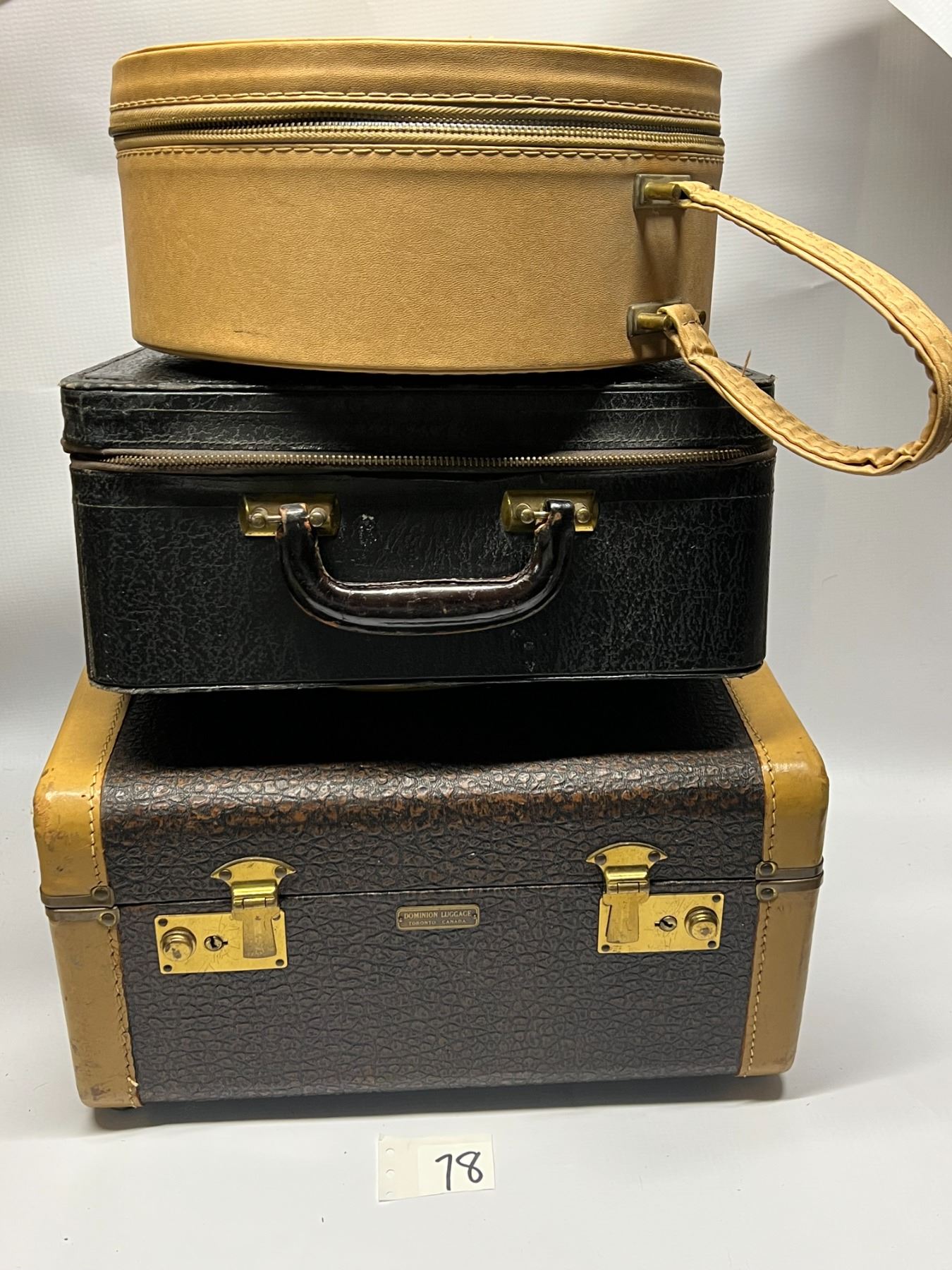 3 Vintage Small Travel Suitcases Make-up Brown: 14x7x9" Black: 12x10x5" Beige:10"