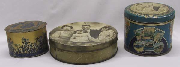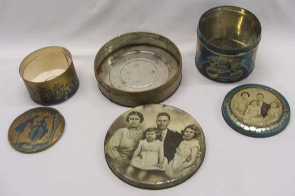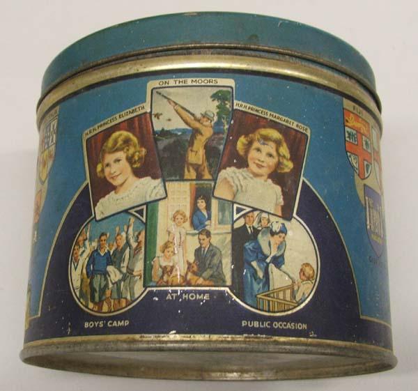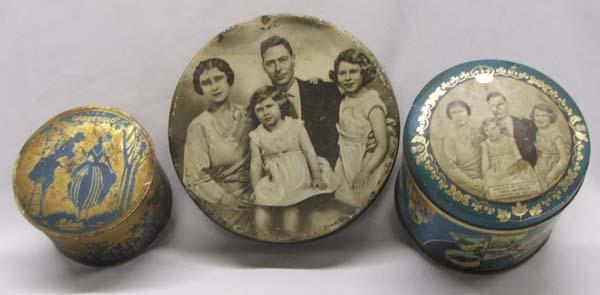 3 Vintage Tins. 2 Biscuit Tins to commemorate the coronation of King George VI of England, made in 1937-Photograph of Royal Family By Marcus Adams on the top. 1-Gardenglo Afterbath Powder Tin -Palmer-. Largest tin measures approx. 2''H x 7''Diameter. Buyers Pay Actual Shipping and Handling Charges(see terms and conditions for more information).