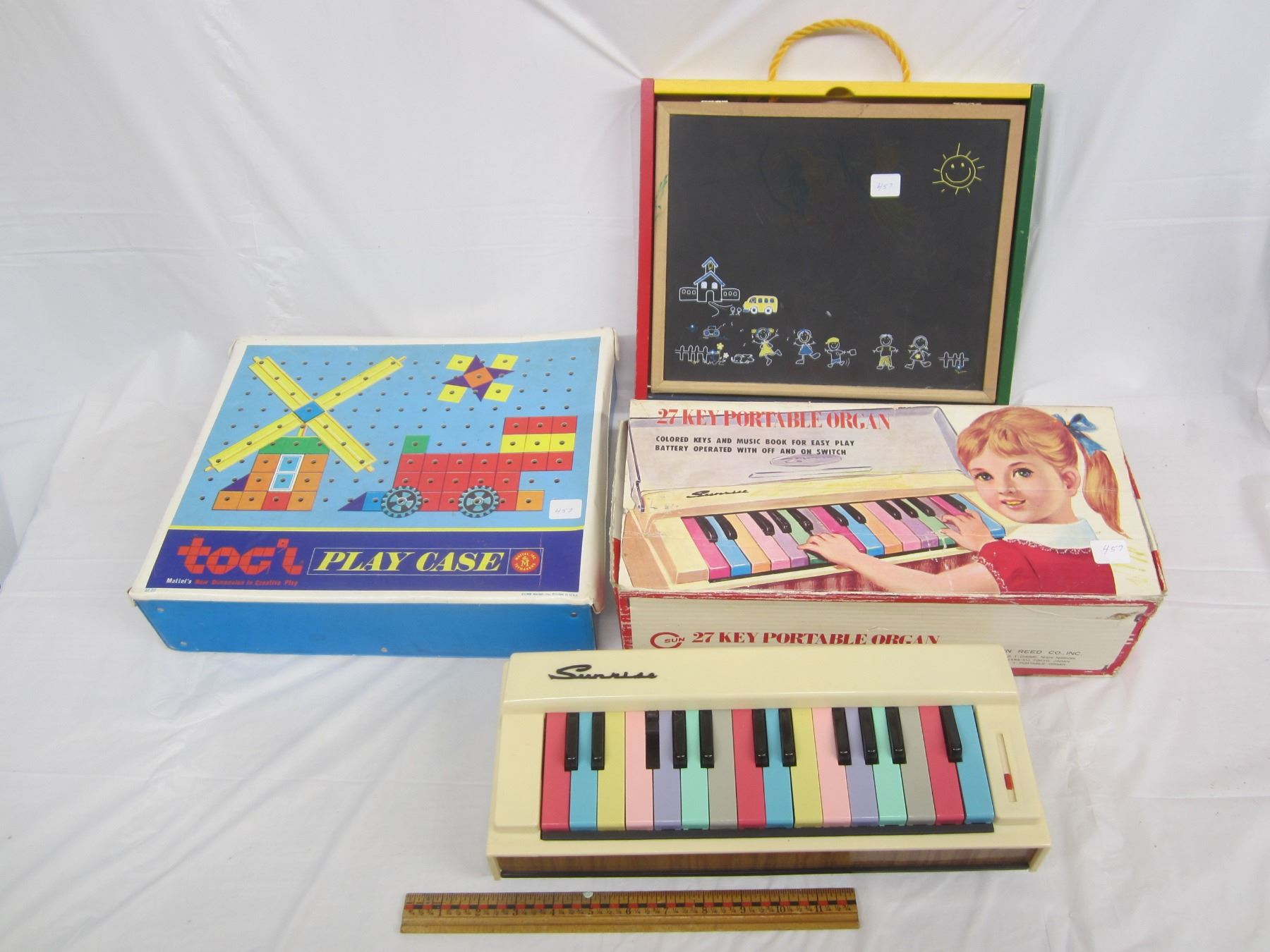 3 Vintage Toys - Organ with Box, Chalk Board, etc.