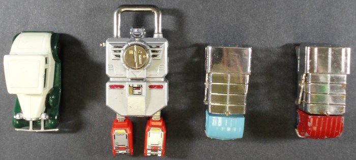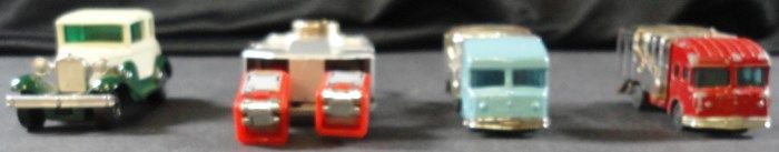 2 Vintage Husky S & D Refuse Vans - 1 blue 1 red, Matchbox new 73 Model 'A' Ford w/original box, & a 1984 Four Star Transformer. Est. Value $75.00 - $100.00.