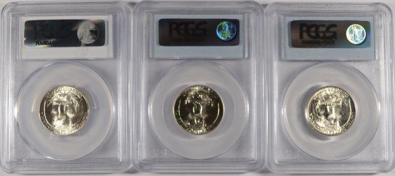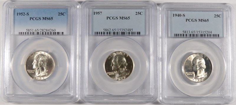 3 WASHINGTON QUARTERS 1940-S, 57, & 52-S ALL PCGS MS-65