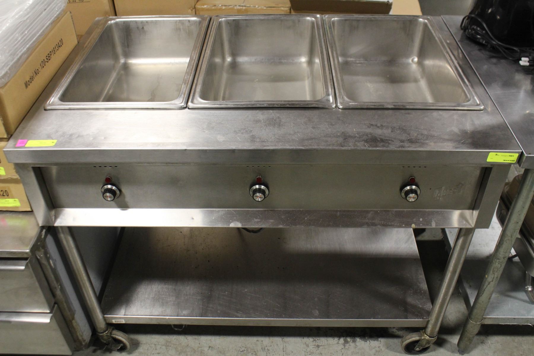 W/ UNDERSHELF STORAGE, ON CASTERS, M# RET-3EM, SINGLE PHASE, 120V, 12.5A, 1500W. 45" X 29" X 35"