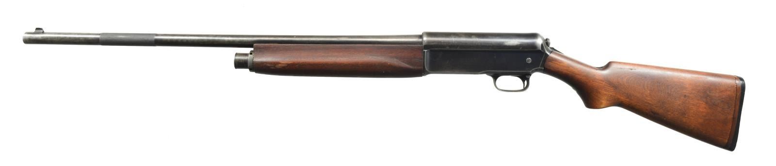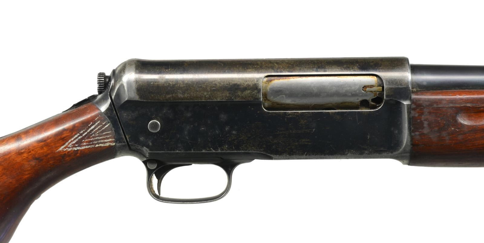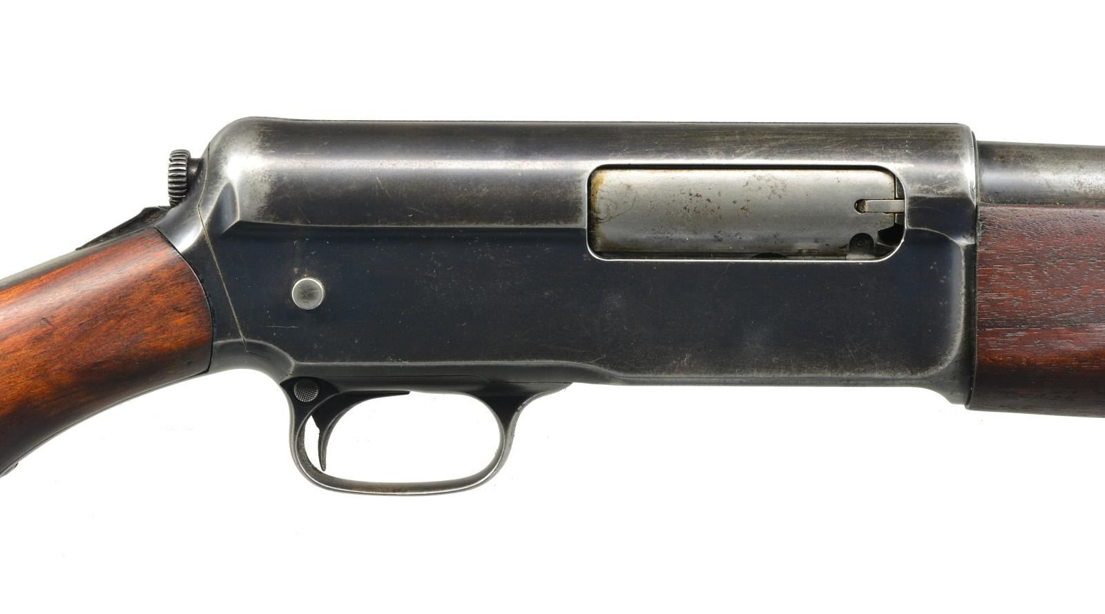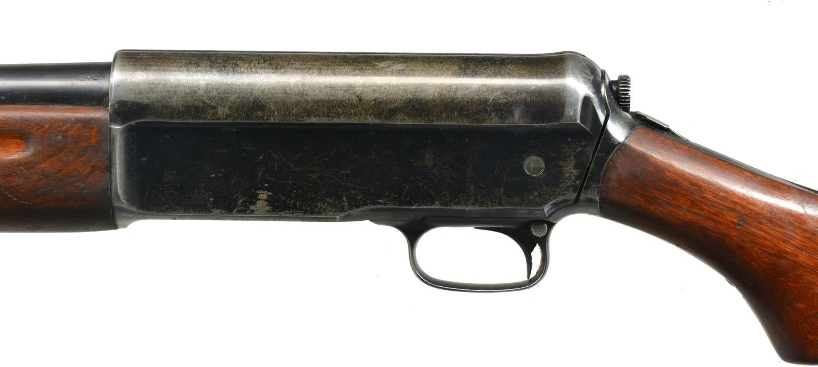 ALL: bbls. 26" plain w/ brass beads & knurled cocking handles. Finger grooved walnut forearms & laminated pistol grip stocks. Browning sold the US manufacturing rights of his famed Auto 5 shotgun to Remington, leaving Winchester to produce a competitive autoloading shotgun that did not infringe a Browning patent. The Model 1911 w/ all it's failings is the result. The duck tail steel action is w/out the Browning Patented bolt operating handle. Approx. 82,744 were mfg. 1911-1928. 1) Cal. 12 Ga. S# A41692. Fixed Cyl. choke. Stock has painted "V" markings on right side of wrist. LOP: 14 3/8" over aftermarket No Shock pad. 1915 Mfg. CONDITION: 60% dull fading blue. Action has sm. gap between receiver & trigger guard. Bbl. is bright having a lg. bulge 3" from muzzle. Stock has worn finish showing scratches & handling marks. Forearm has 3 cracks extending from receiver. Recoil pad is hard & crushed. (20-2753/DS). 2) Cal. 12 Ga. S# A32988. Fixed Full choke. LOP: 14" over poorly fit aftermarket Black Sheep recoil pad. 1913 Mfg. CONDITION: 50% dull fading blue showing spots of pitting & abrasive cleaning. Sanded & refinished wood shows handling marks & mildew spots. Forearm has 2 lg. cracks extending from action. Bbl. shows plastic fouling in choke area w/ lg. dent. 12 1/2" from muzzle. (20-2803/DS). 3) Cal. 12 Ga. S# A5440. Fixed Full choke. Replacement walnut forearm. LOP: 13 3/4" over replacement buttplate & 1/4" spacer. 1912 Mfg. CONDITION: 60% dull fading blue w/ spots of corrosion. Forearm has dark oil type finish. Refinished stock shows scratches & marks. Good bore. (20-2816/DS). ALL CURIO. $500-750.