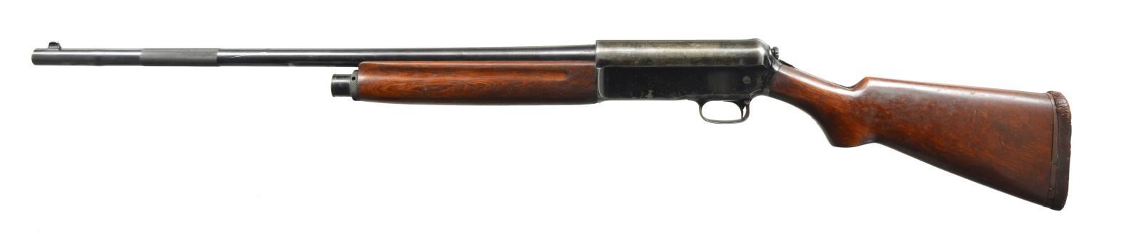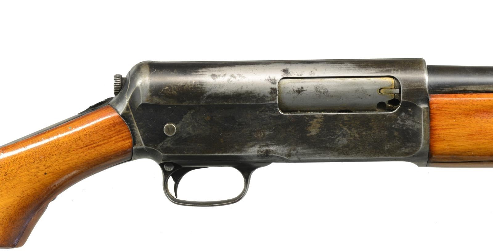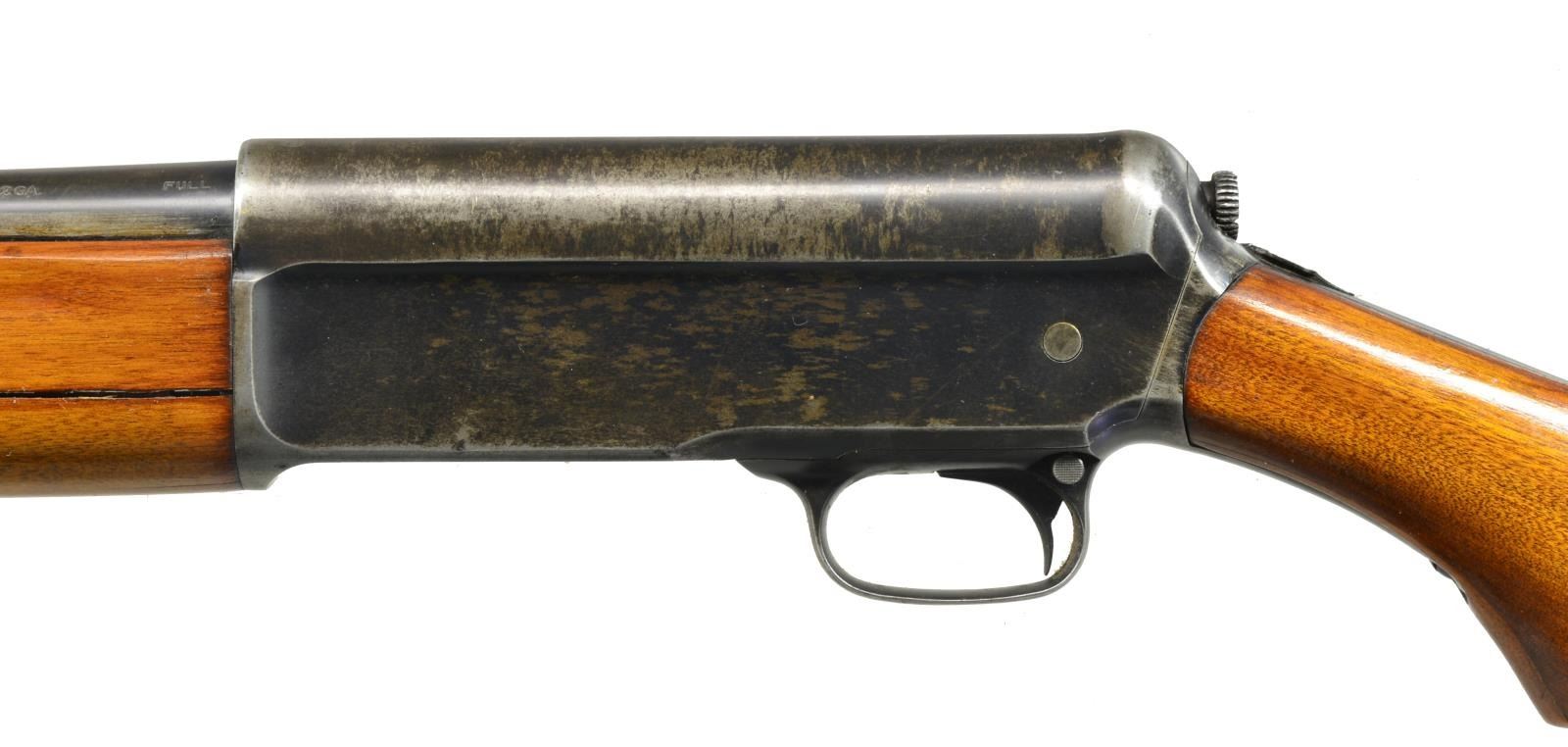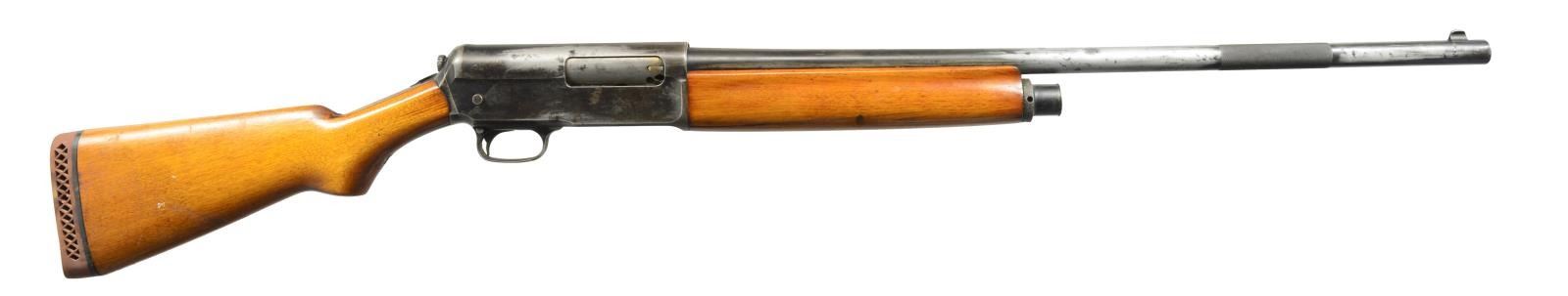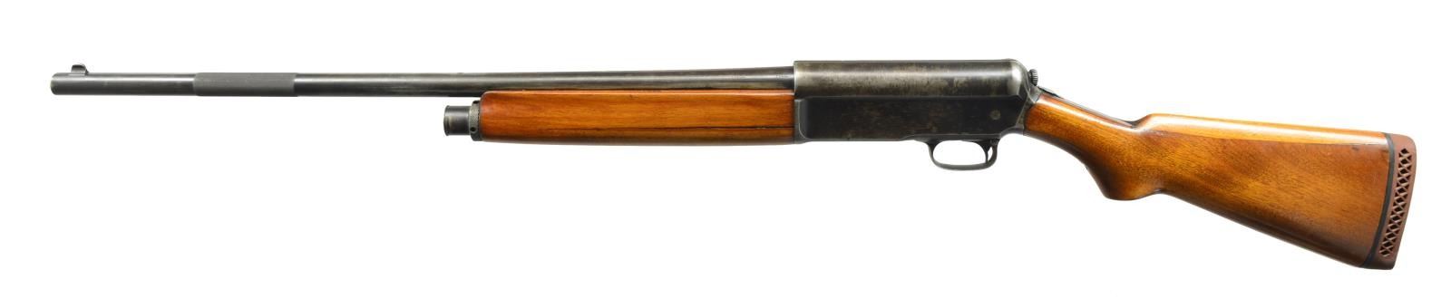 ALL: bbls. 26" plain w/ brass beads & knurled cocking handles. Finger grooved walnut forearms & laminated pistol grip stocks. Browning sold the US manufacturing rights of his famed Auto 5 shotgun to Remington, leaving Winchester to produce a competitive autoloading shotgun that did not infringe a Browning patent. The Model 1911 w/ all it's failings is the result. The duck tail steel action is w/out the Browning Patented bolt operating handle. Approx. 82,744 were mfg. 1911-1928. 1) Cal. 12 Ga. S# A41692. Fixed Cyl. choke. Stock has painted "V" markings on right side of wrist. LOP: 14 3/8" over aftermarket No Shock pad. 1915 Mfg. CONDITION: 60% dull fading blue. Action has sm. gap between receiver & trigger guard. Bbl. is bright having a lg. bulge 3" from muzzle. Stock has worn finish showing scratches & handling marks. Forearm has 3 cracks extending from receiver. Recoil pad is hard & crushed. (20-2753/DS). 2) Cal. 12 Ga. S# A32988. Fixed Full choke. LOP: 14" over poorly fit aftermarket Black Sheep recoil pad. 1913 Mfg. CONDITION: 50% dull fading blue showing spots of pitting & abrasive cleaning. Sanded & refinished wood shows handling marks & mildew spots. Forearm has 2 lg. cracks extending from action. Bbl. shows plastic fouling in choke area w/ lg. dent. 12 1/2" from muzzle. (20-2803/DS). 3) Cal. 12 Ga. S# A5440. Fixed Full choke. Replacement walnut forearm. LOP: 13 3/4" over replacement buttplate & 1/4" spacer. 1912 Mfg. CONDITION: 60% dull fading blue w/ spots of corrosion. Forearm has dark oil type finish. Refinished stock shows scratches & marks. Good bore. (20-2816/DS). ALL CURIO. $500-750.