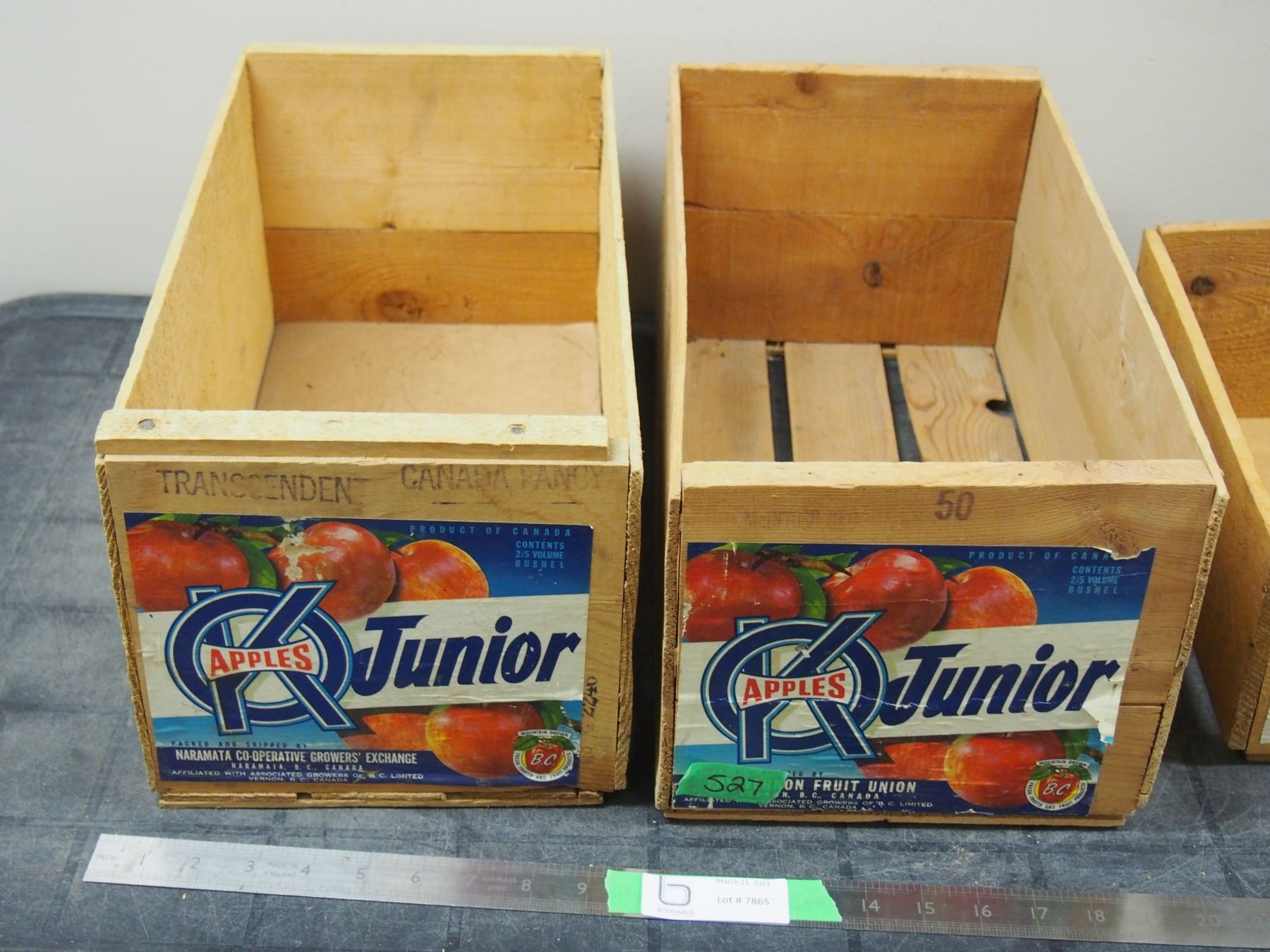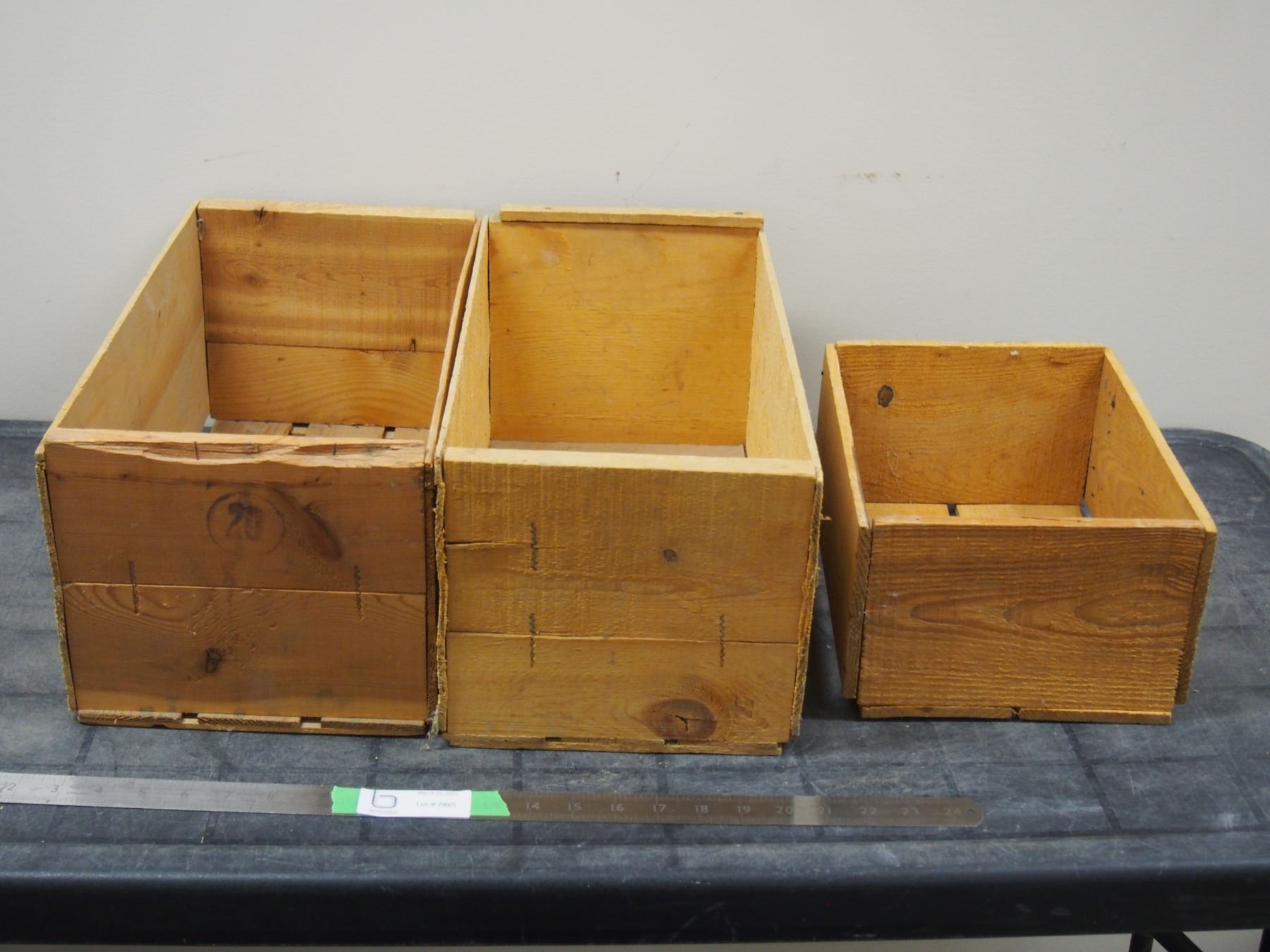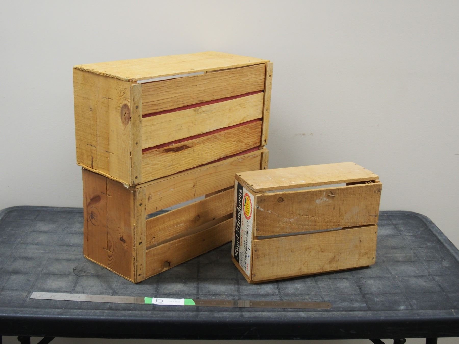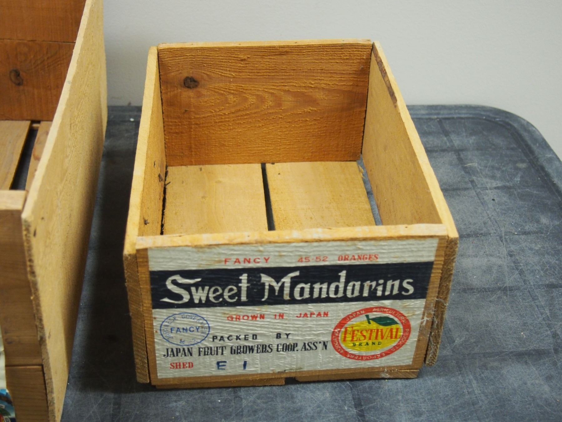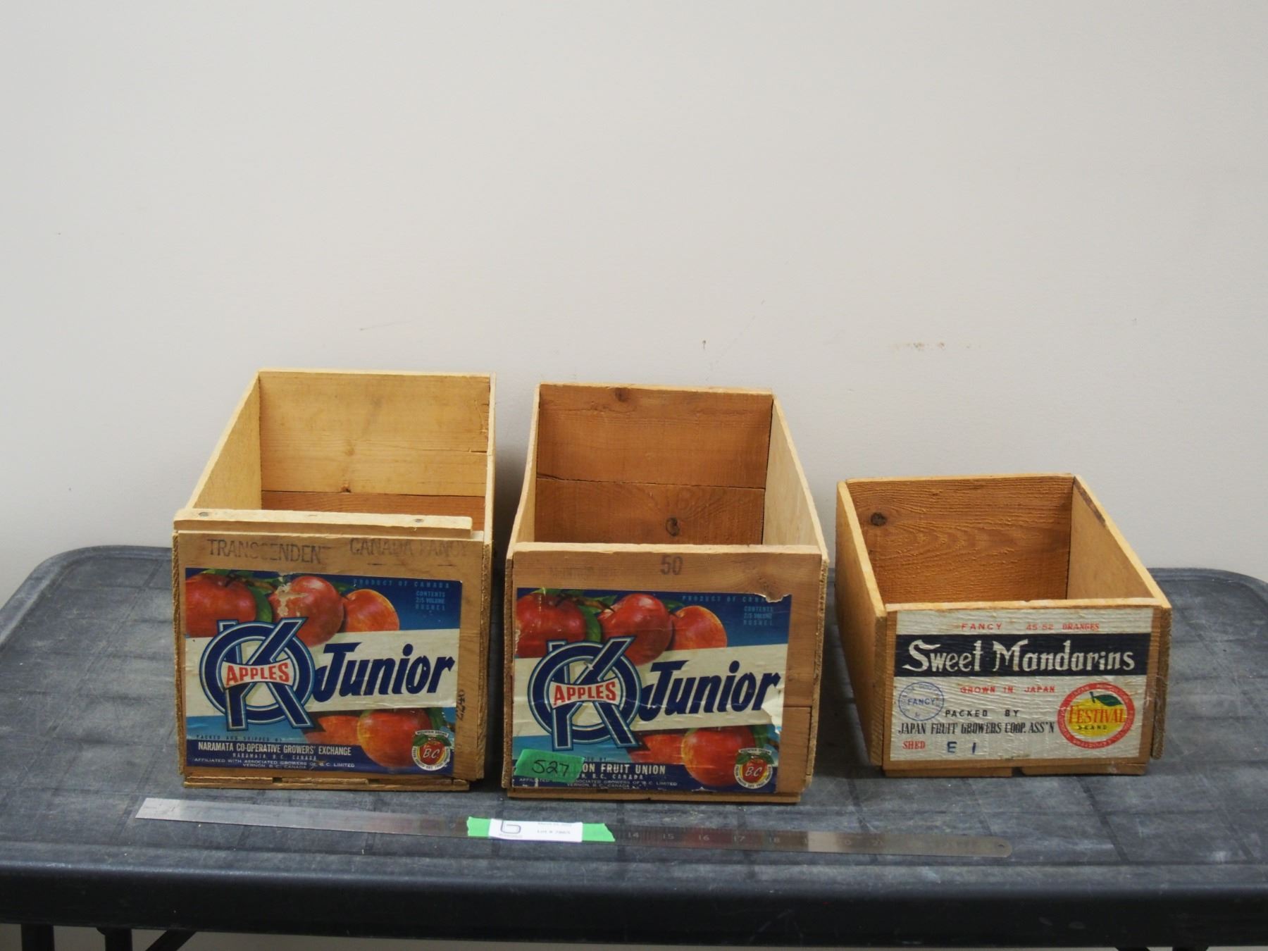 (3) WOODEN CRATES (2 APPLE, 1 ORANGE)