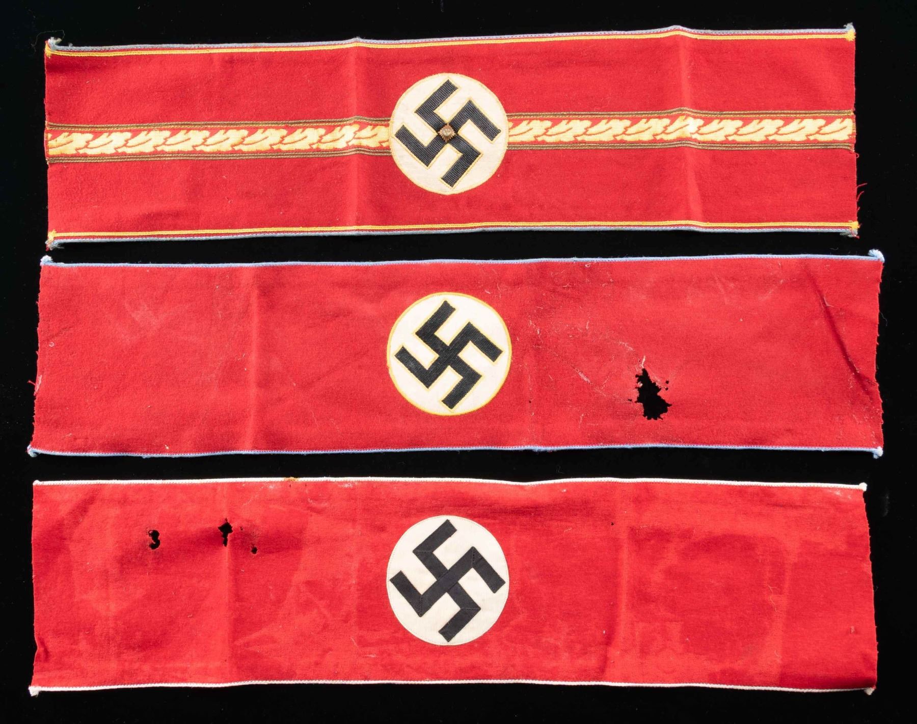 3 WWII GERMAN POLITICAL LEADER ARMBANDS.