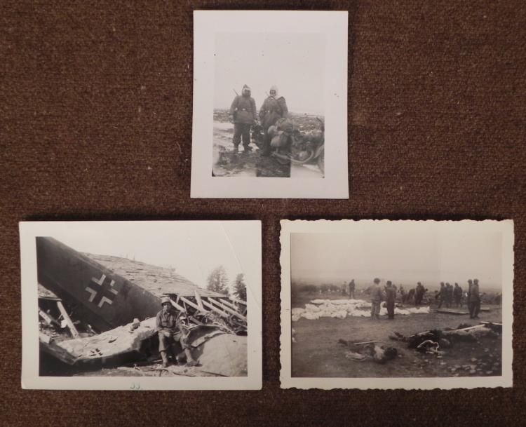 3 WWII-WAR'S END PHOTOS-NAZI PLANE, GRAVES, MOTORCYCLE