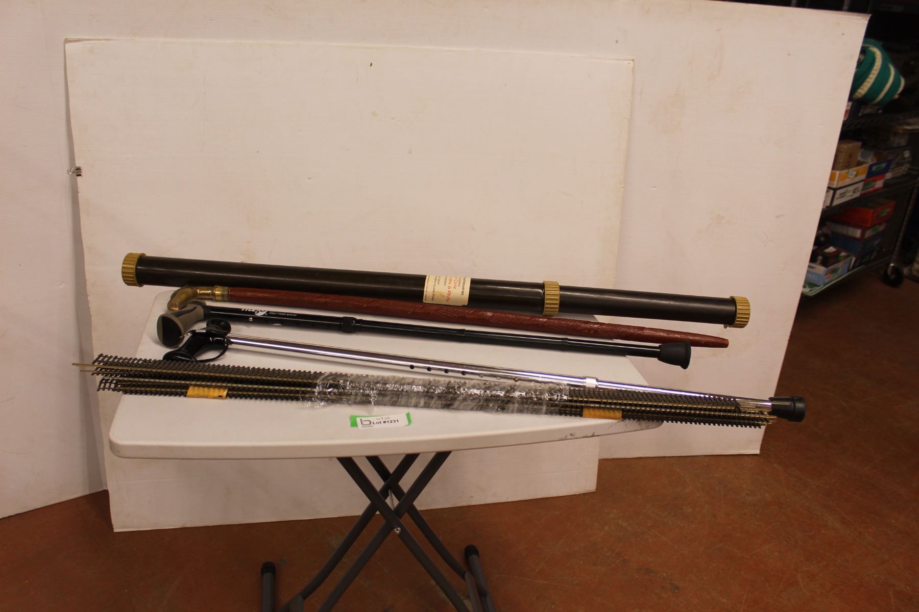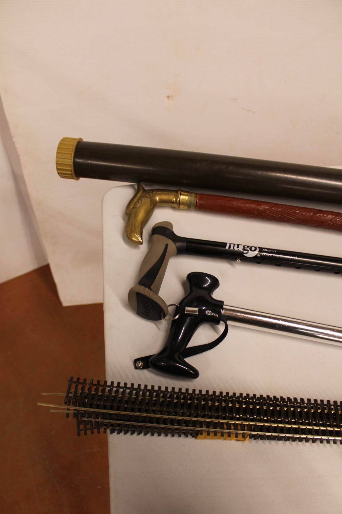 *(3) Walking Sticks, Toy Train Tracks, Telescoping Rod Case - Table Not Included