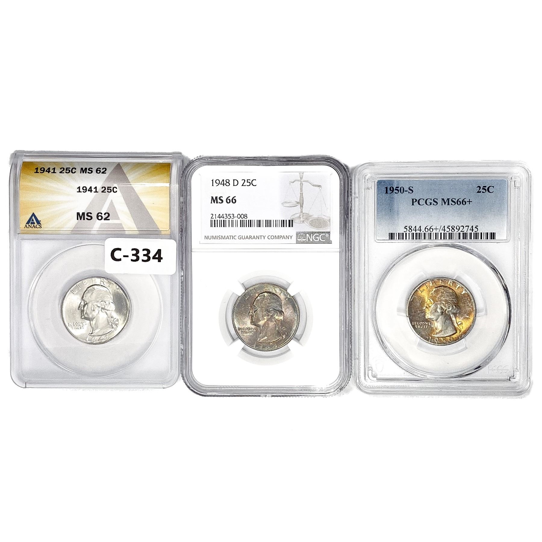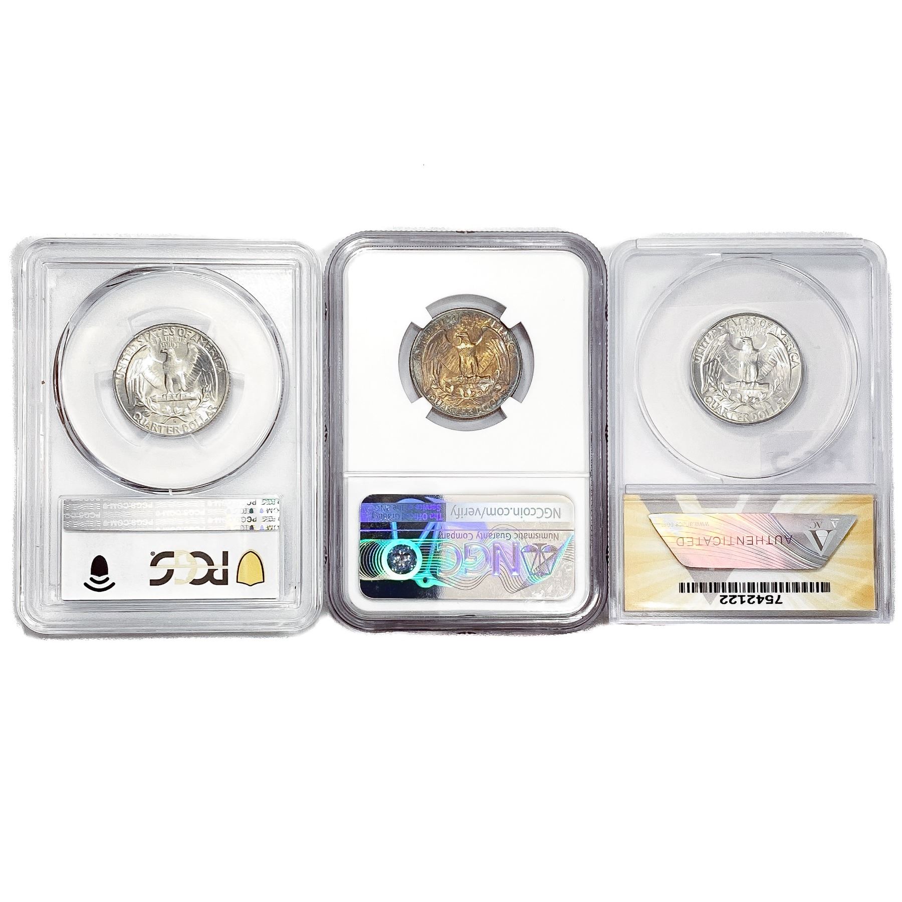 [3] Wash. Silver Quarter Collect ANACS/PCGS/NGC MS