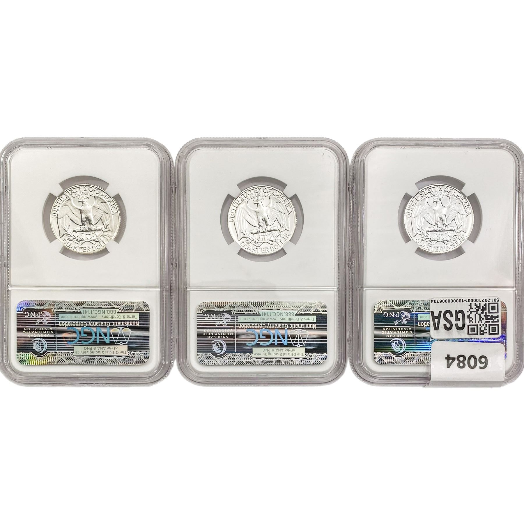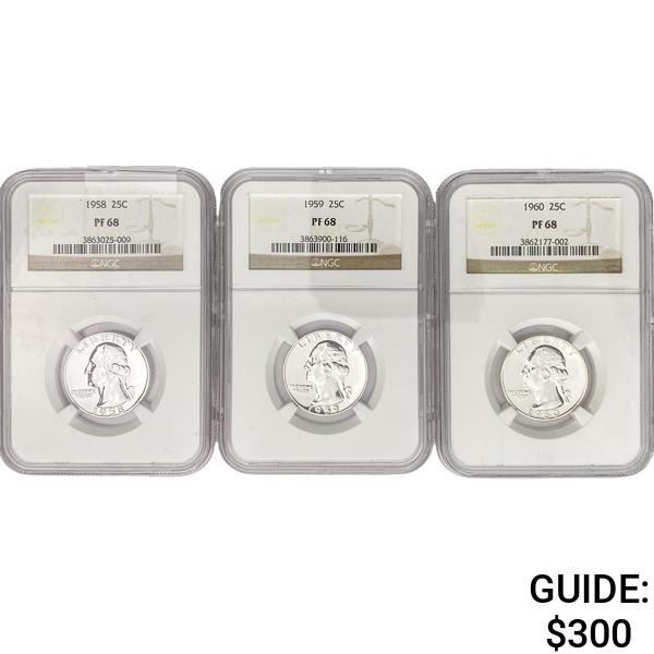 (3) Wash. Silver Quarters NGC PF68 (1958, 1959, 19