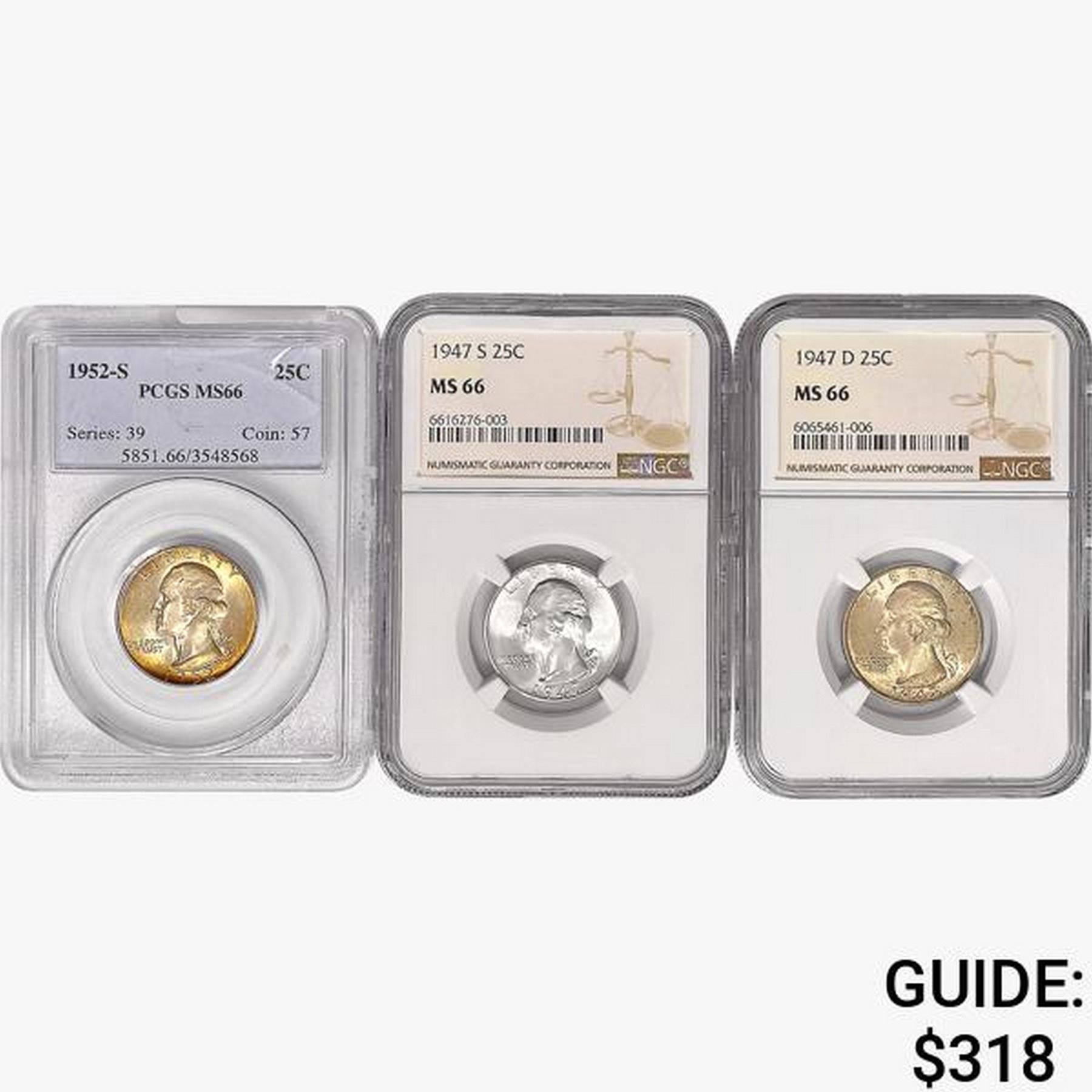 [3] Washington Silver 25C NGC,PCGS MS66 1947-1952