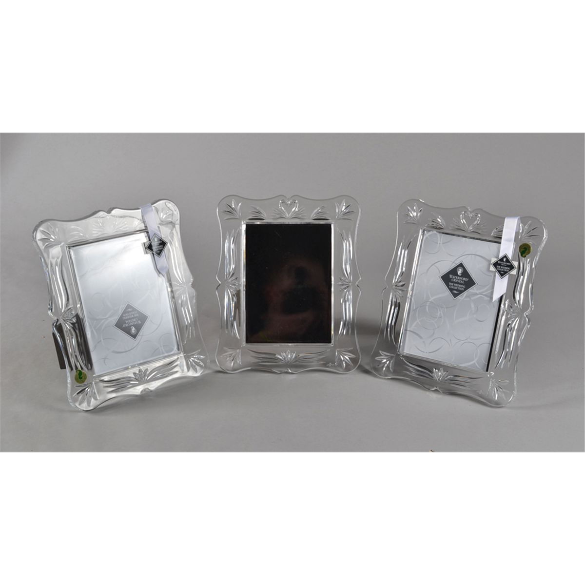 Includes two in original boxes, and unused, together with a slightly used frame. All with leafy designs and small heart at top. Holds a 5 x 7 photo. 10.5" H x 8.25" W. All in excellent condition. Circa 20th century. Private collection Shelby Twp., MI.