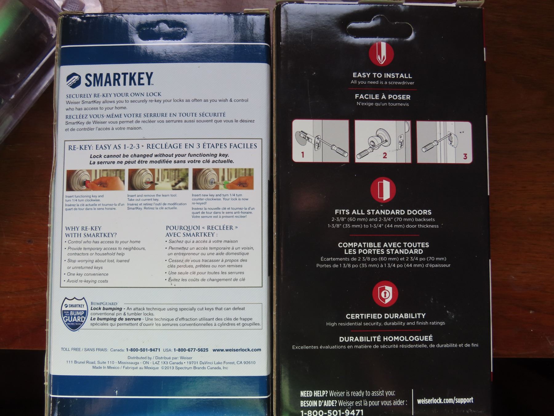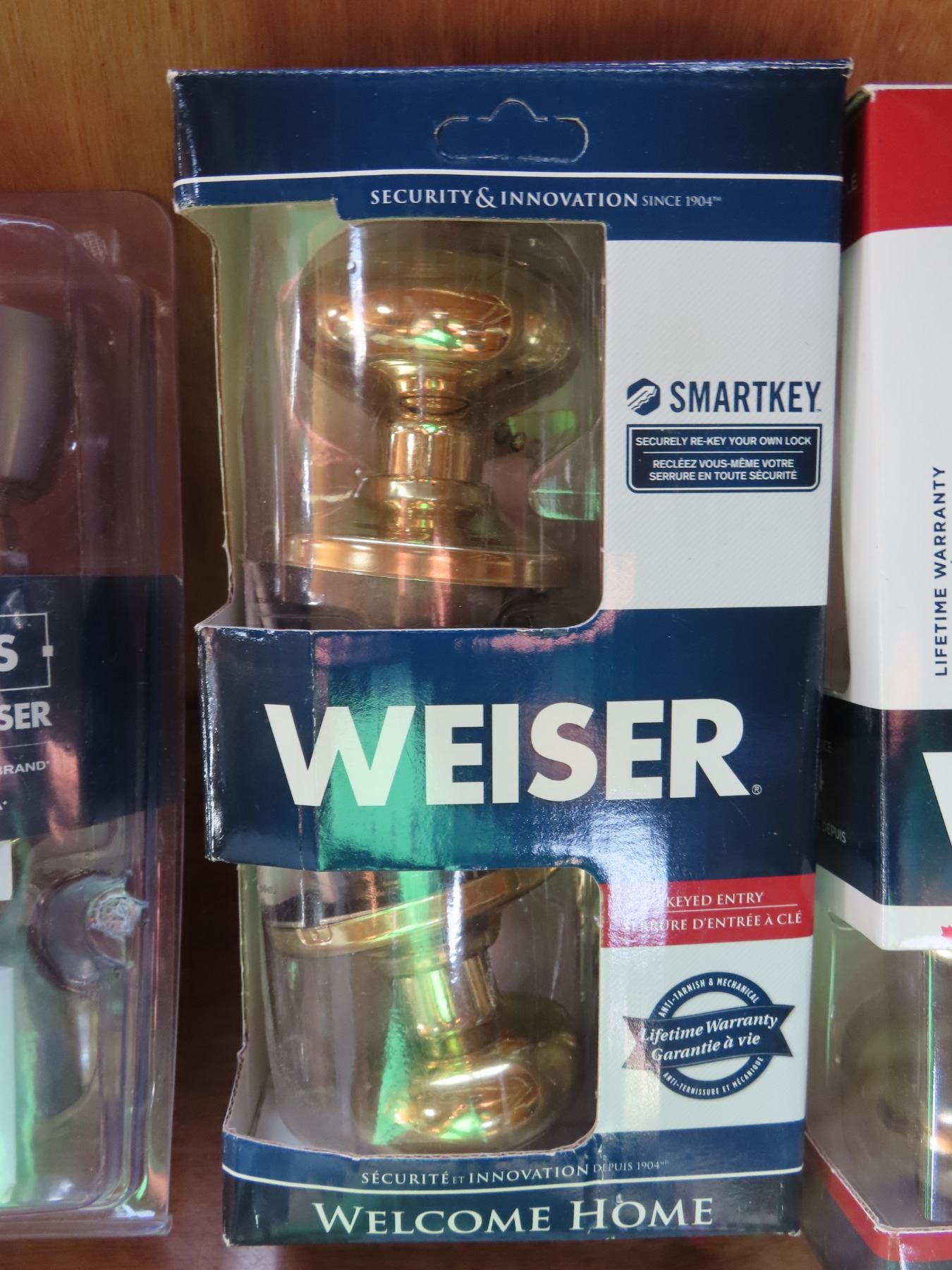3 Weiser keyed exterior knob lock sets ( 2 Smart key knobs)