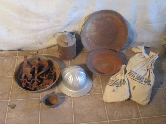 3 Wells Fago Bank Bags, 2 Rustic Gold Pans,