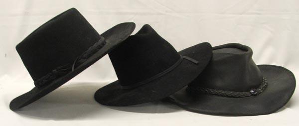 3 Western Hats, 1 leather 2 felt, sizes 7, XL, and L Youth. SHI $25.