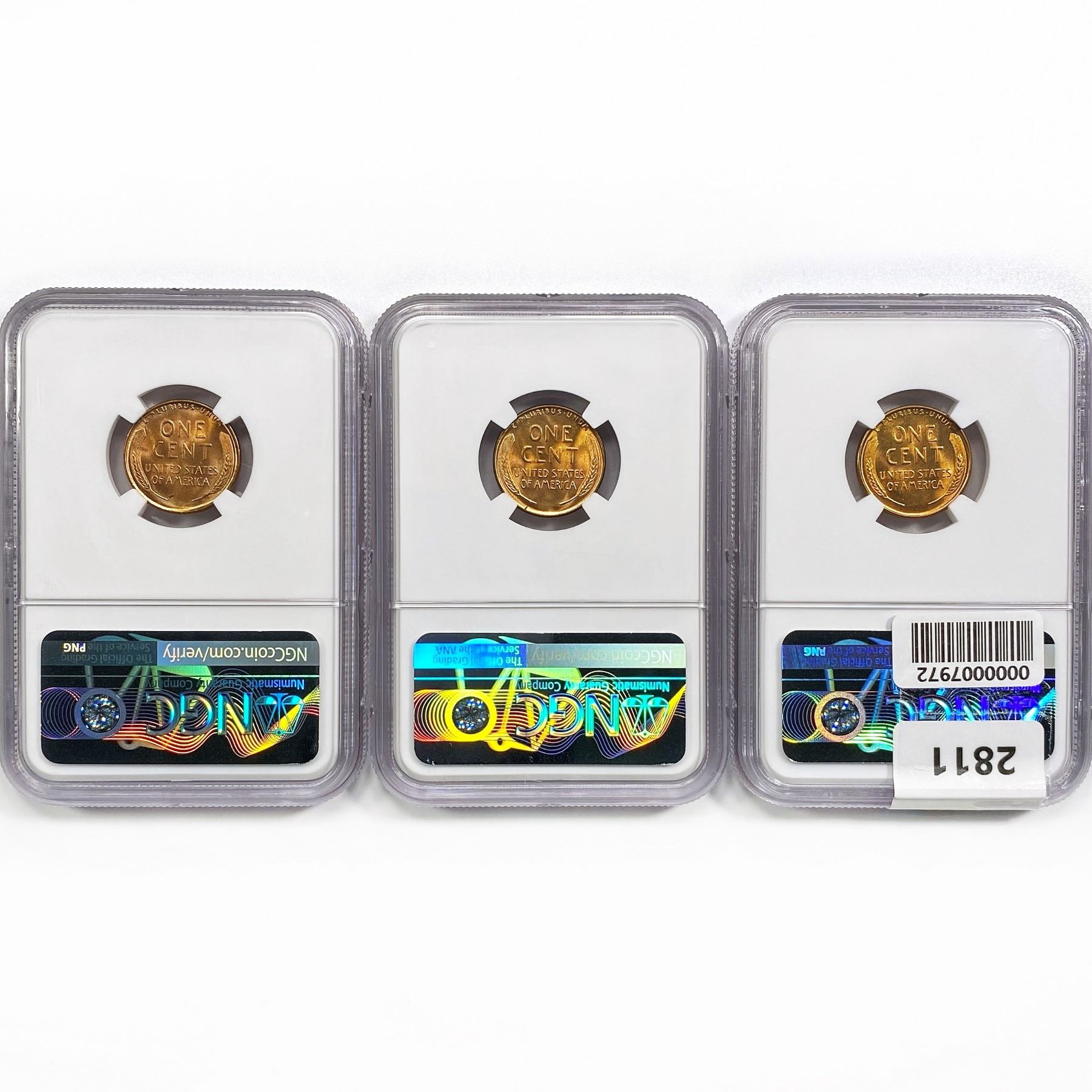 [3] Wheat Cent NGC MS66 RD 1938-1941