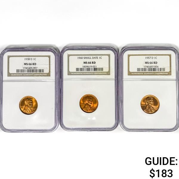 [3] Wheat & LM Cents NGC MS66 RD 1938-1960