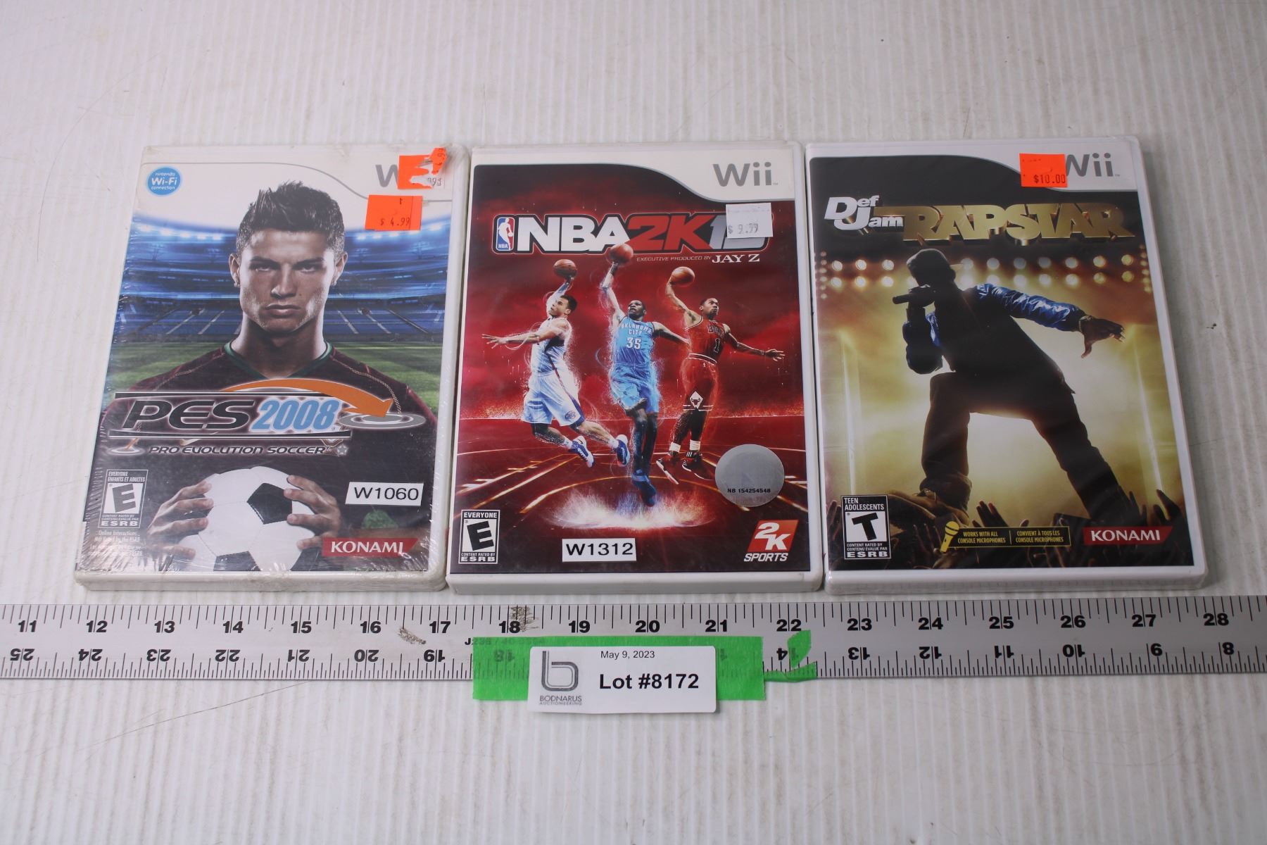 (3) Wii Games - Soccer, NBA and Rapstar (Two are NIB)