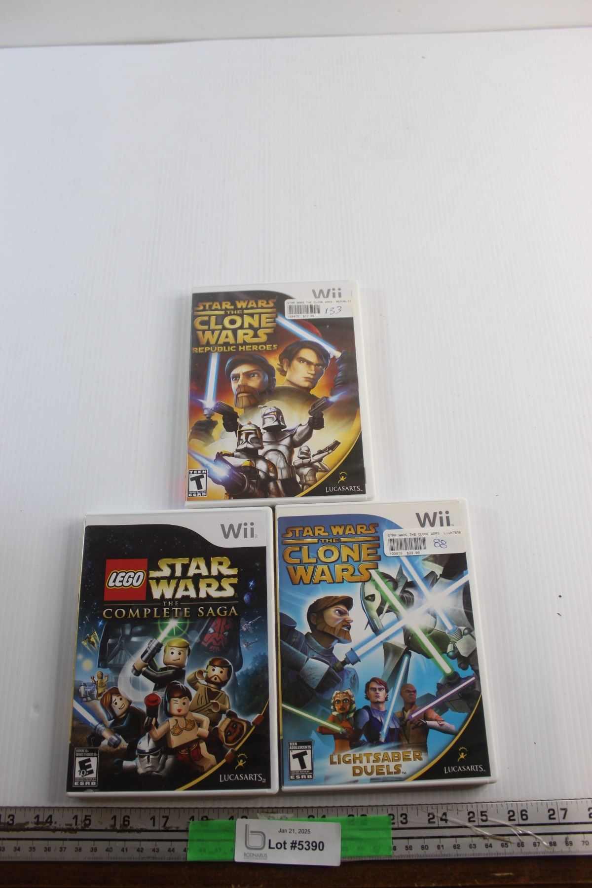 (3) Wii Games - Star Wars The Clone Wars and Lego Star Wars The Complete Saga