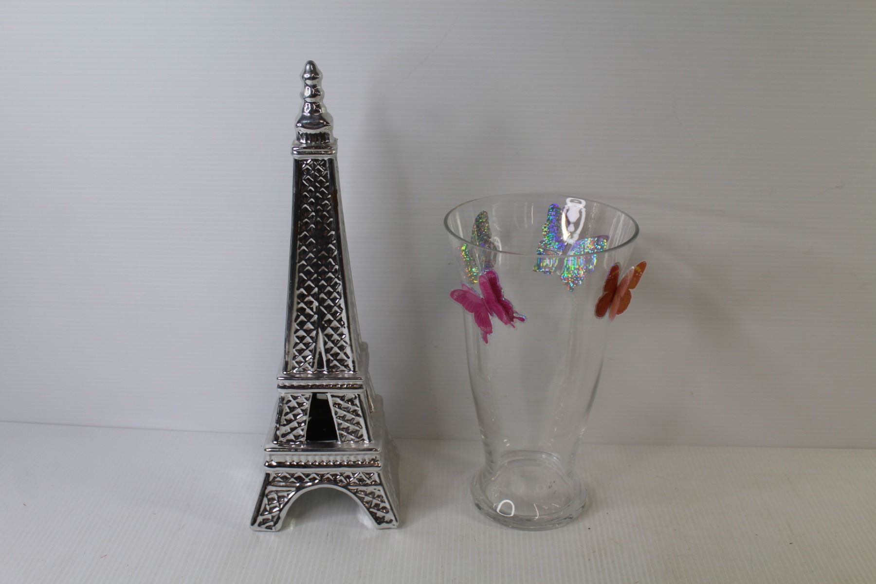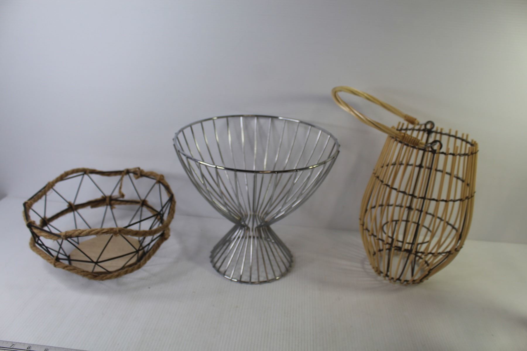 (3) Wire Baskets - Glass Vase - Ceramic Eiffel Tower