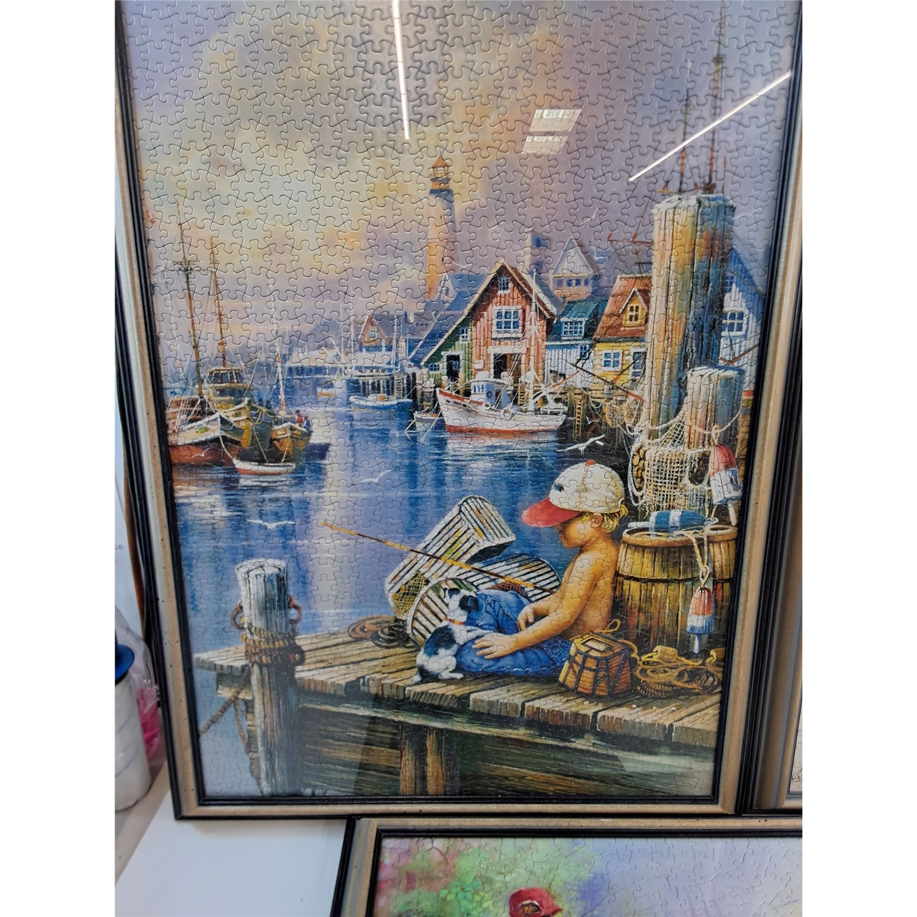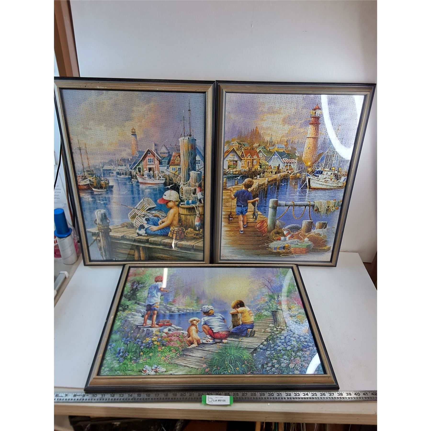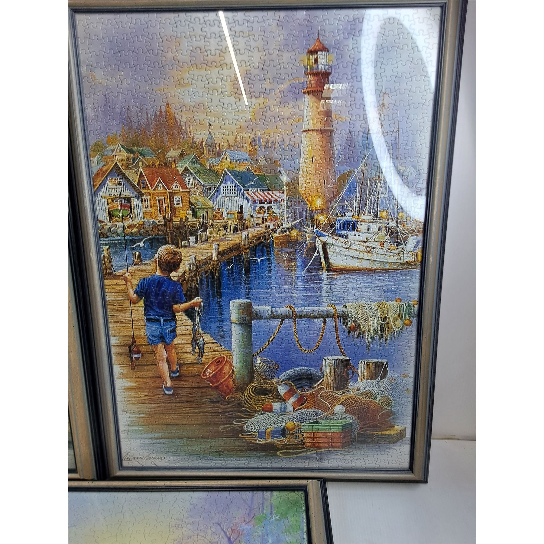 (3) Wood Framed Jigsaw Puzzle Pictures - All 29" x 21" - Pickup Preferred
