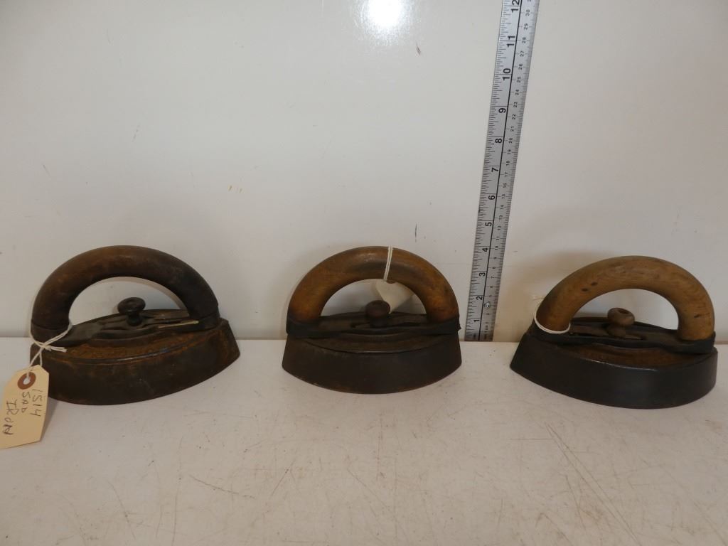 3 Wood Handles Sad Irons