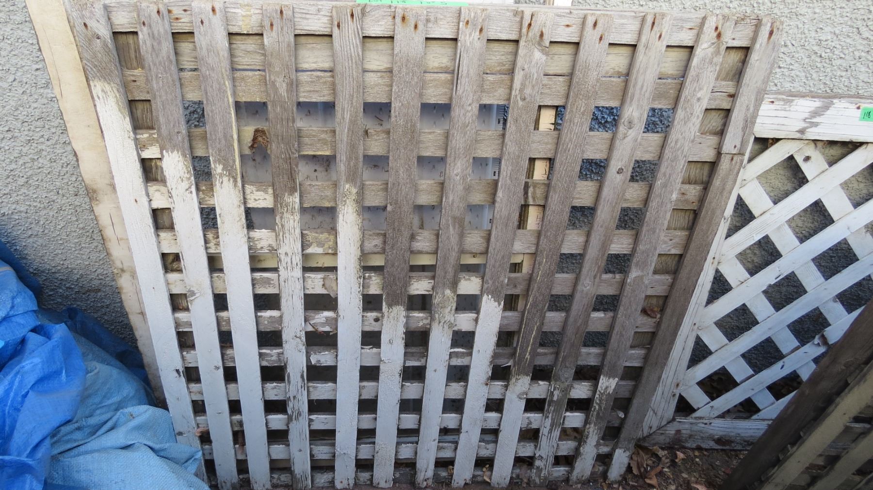(3) Wooden Fence pieces 24x31, 27x31, 35x37 + window frame with partial glass 55 x 27 + Soffit (1 piece - 80L)