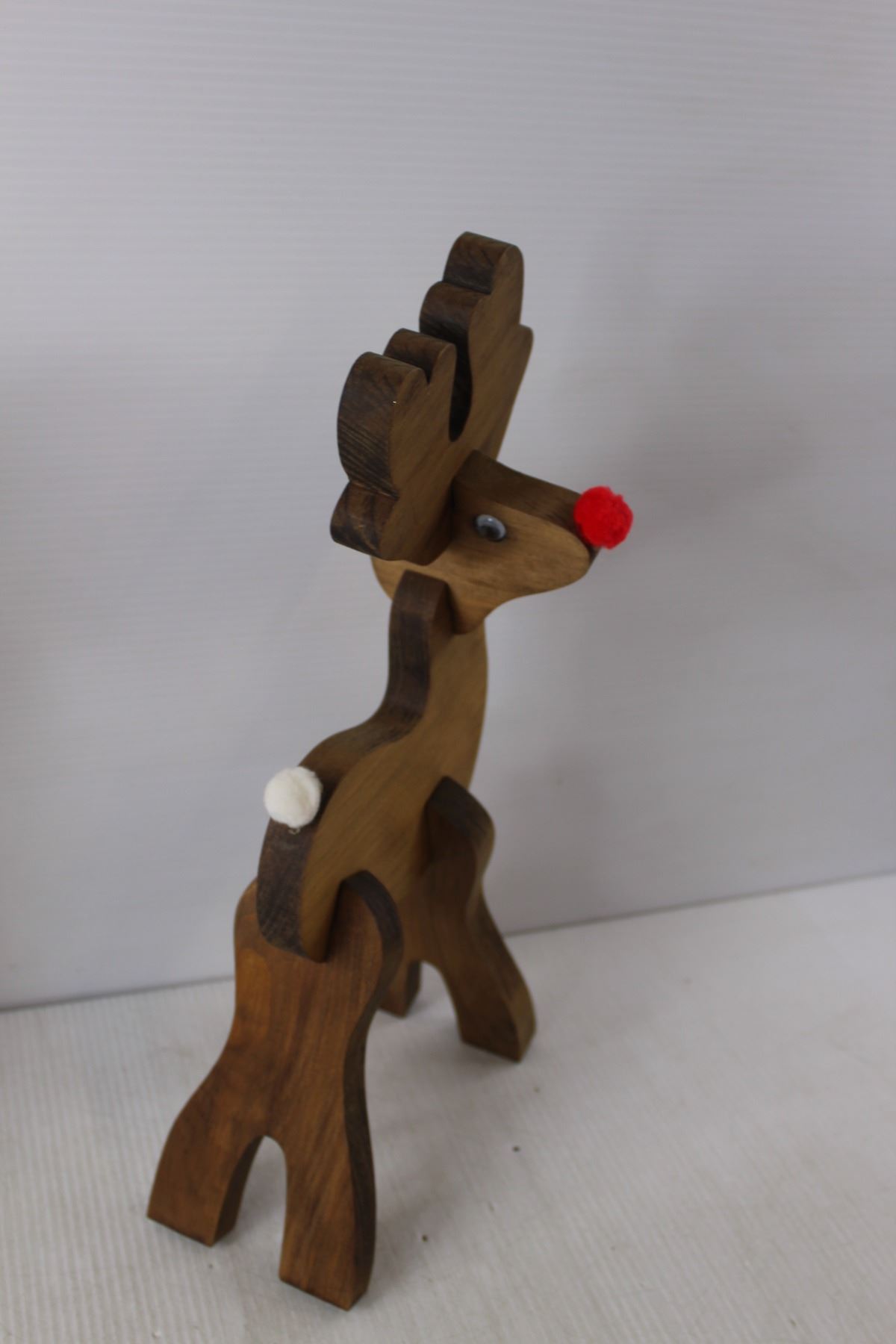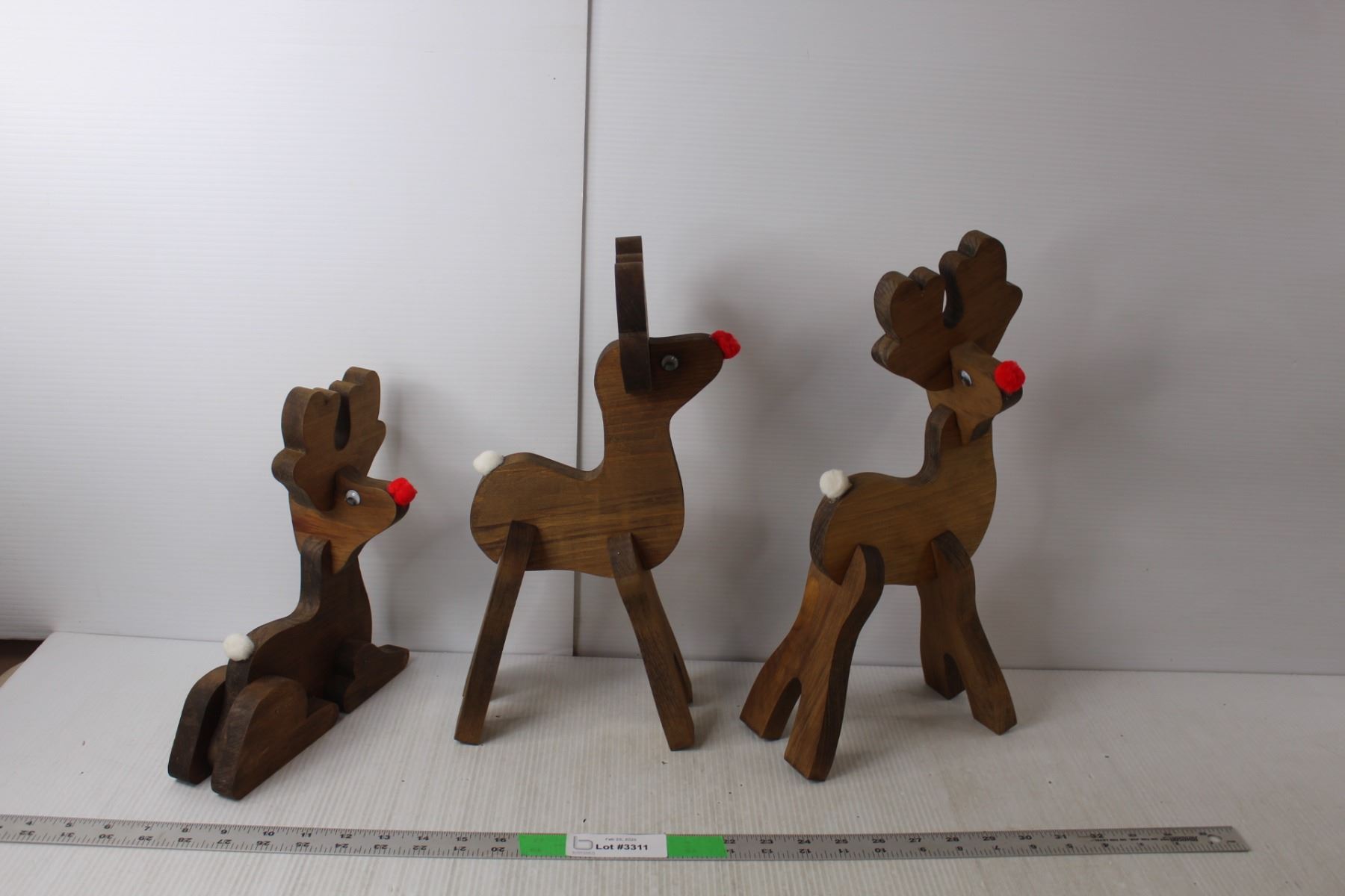 (3) Wooden Reindeer Statues Up to 14" Tall