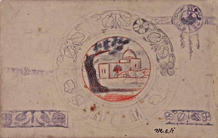 3. by Aharon Shaul Schur, stamped by the estate (lower right and on the reverse). Colored pencils on paper. Size: 18.5 x 28 cm. Condition: A few foxing spots.
