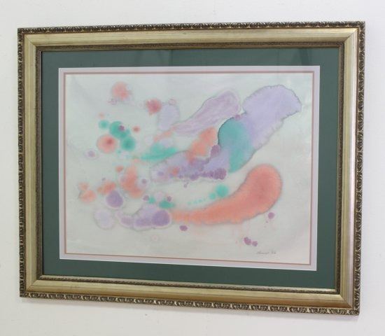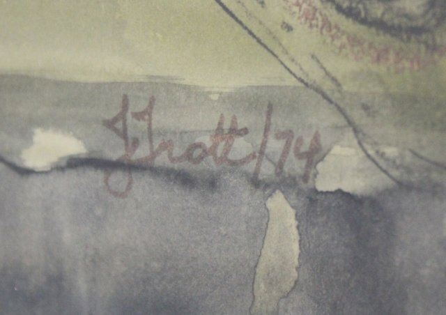 One floral landscape, signed and dated Rosemary Zwick 1993 lower right; one possibly print (not taken out of frame), signed and dated Marcus '86; and one abstract, signed J. Trott '74, approx. 16 1/2" H x 22" W sight, 26" H x 32" W framed. (6099)