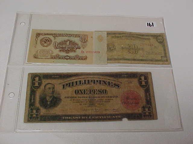 3 World Currency circ: 2 Philippines (1949 20 Centavo, 1936 1 Peso), Soviet Union CCCP