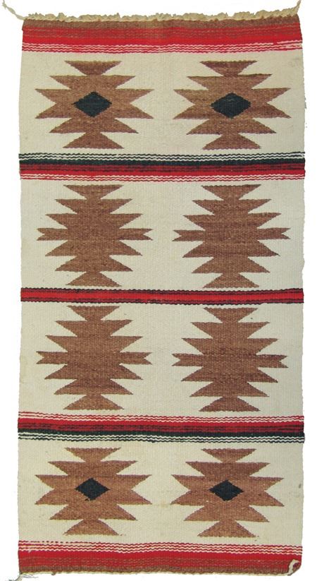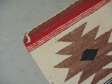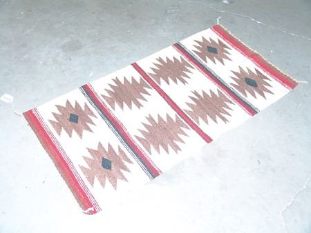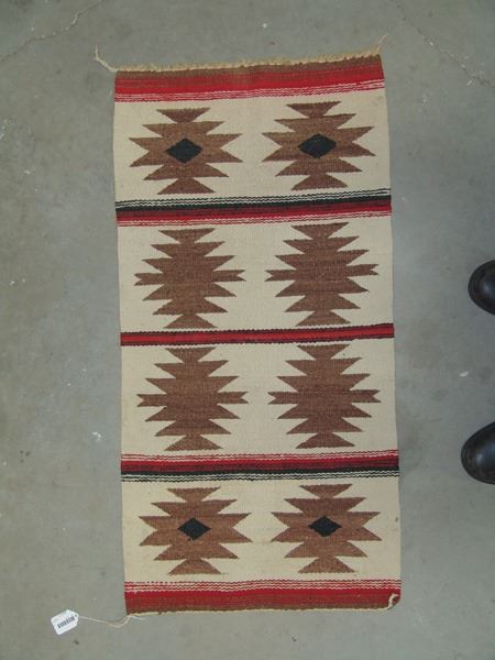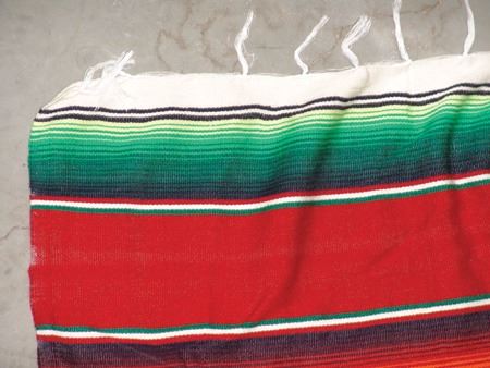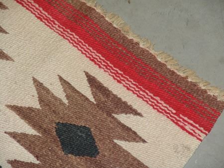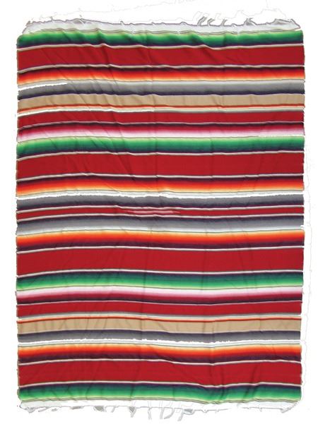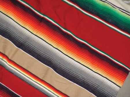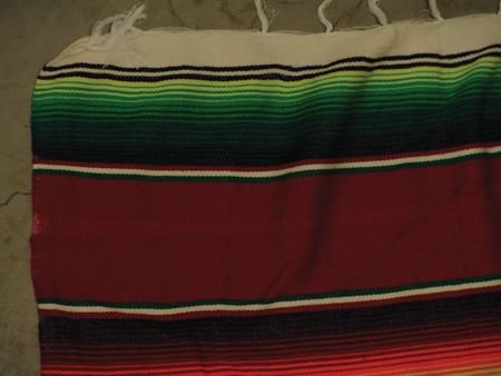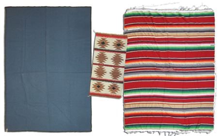 Ca. 1950s-1980s, Includes a small Navajo shelf/alter rug with wavy line design, an all wool camp blanket with fully stitched yarn border, and a colorful fine weave Mexican blanket. All in good condition, large blanket has some edged wear. Largest 88" x 55"