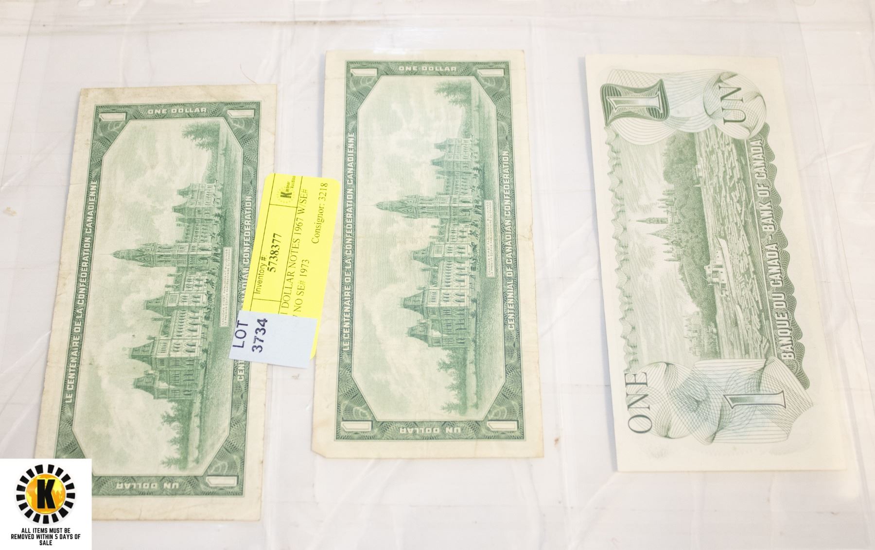 3 X 1 DOLLAR NOTES 1967 W/SE# 1967 NO SE# 1973