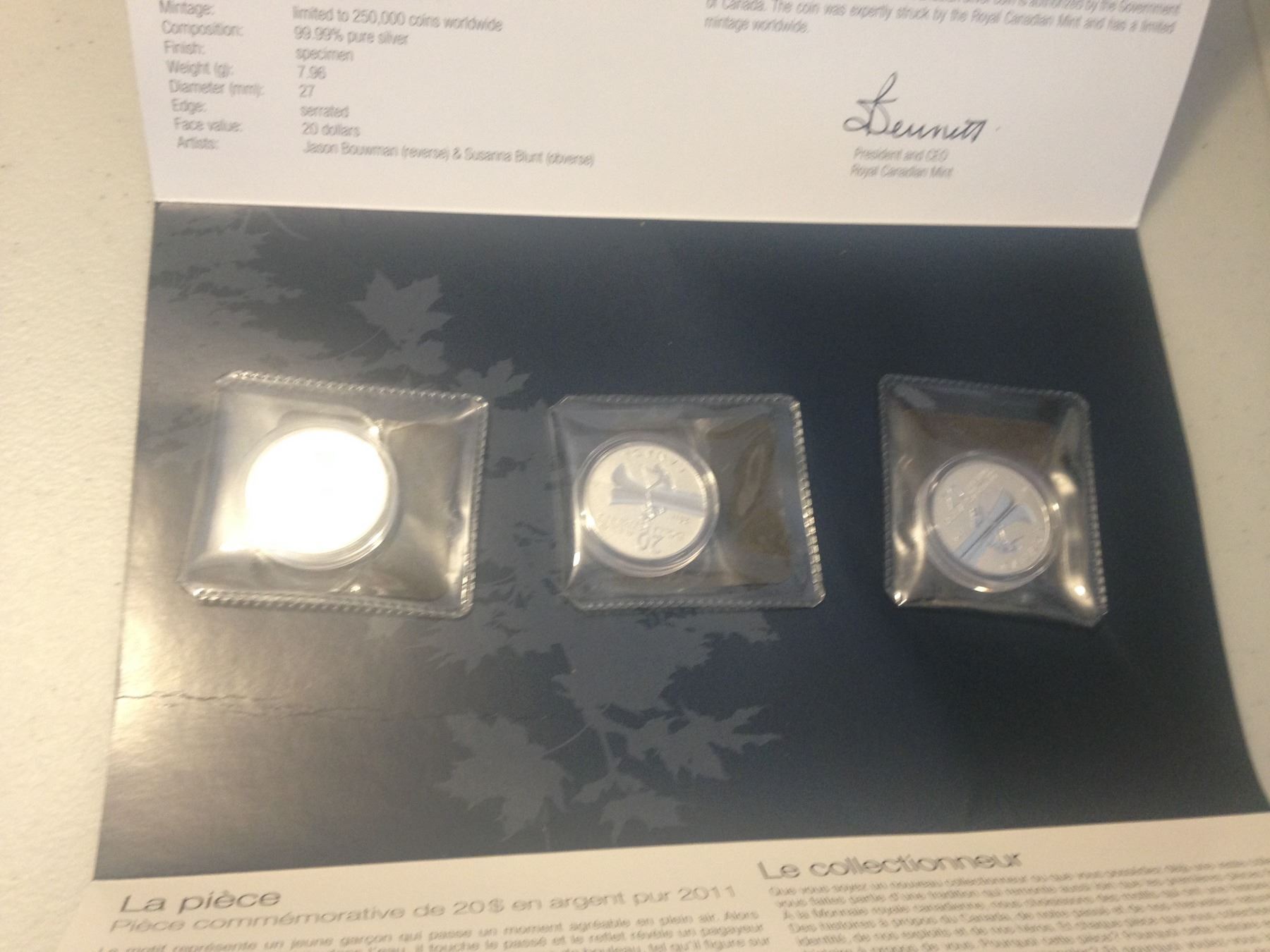 $20 Fine Silver Coin -$20 for $20 - Canoe - (2 missing cards)