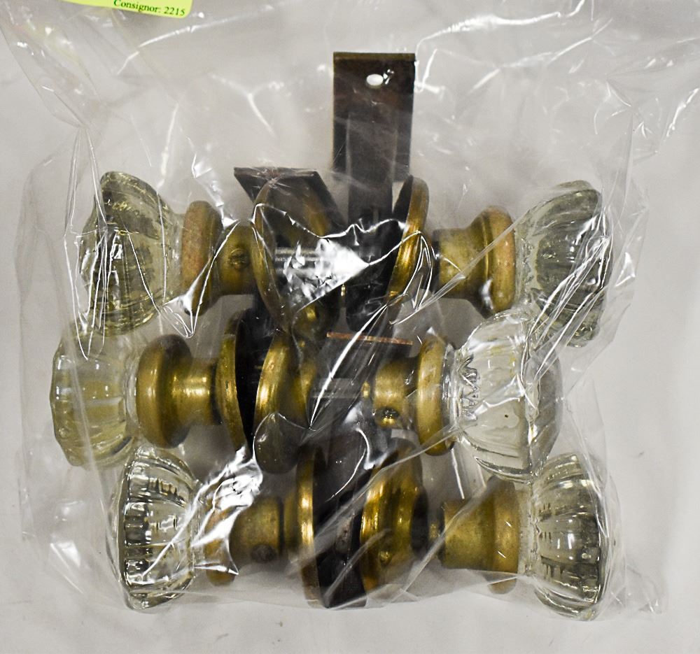 3 X GLASS DOOR KNOBS PRE 1950'S ALL PARTS INCL.