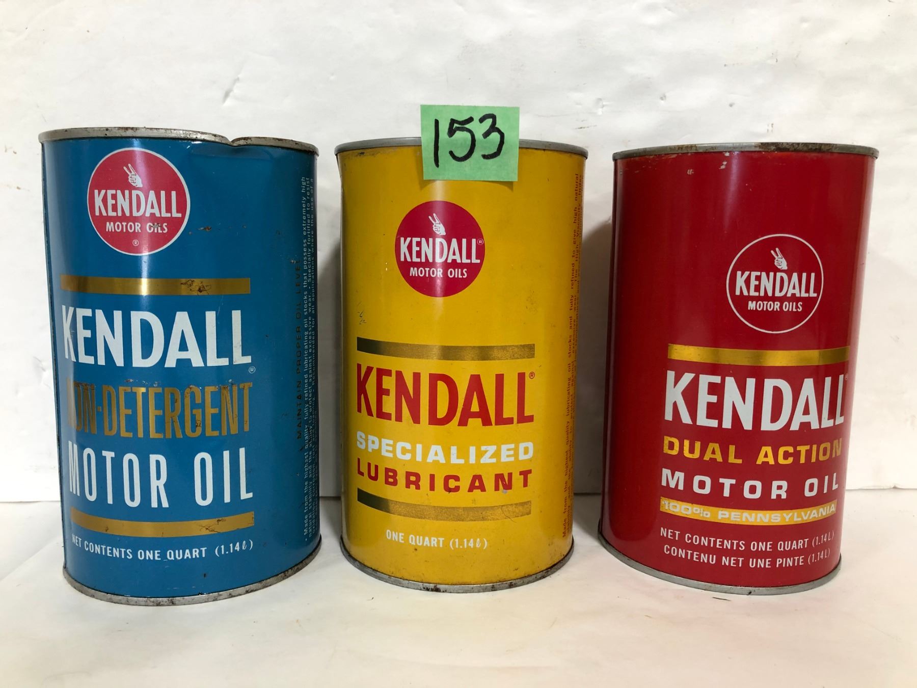 3 X KENDALL MOTOR OIL CANS - BLUE FULL